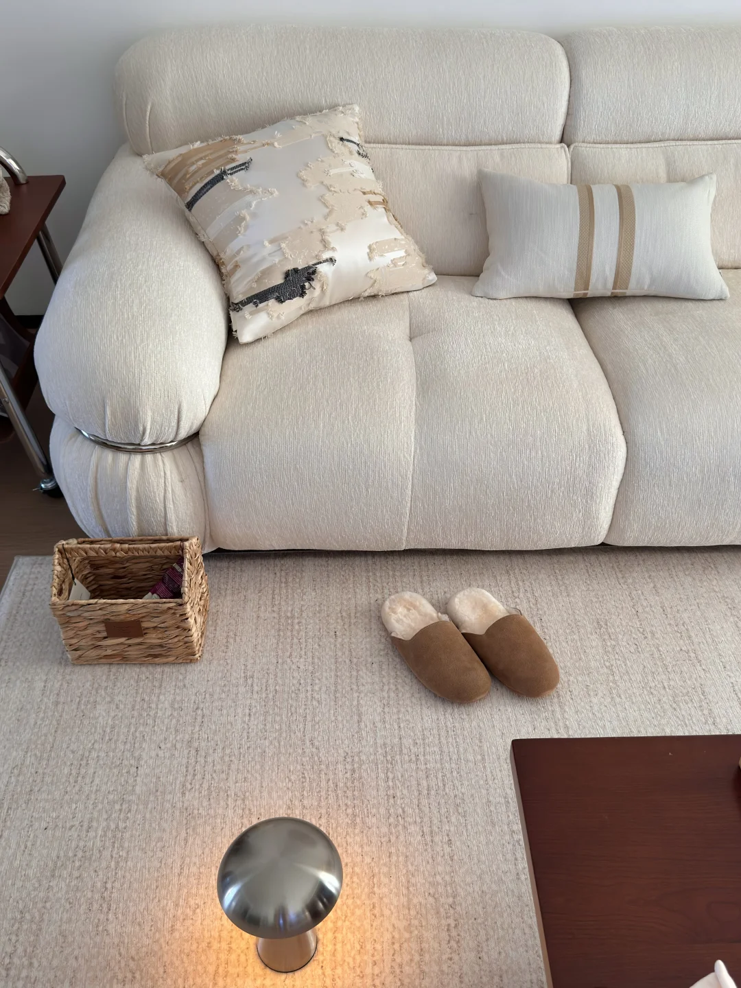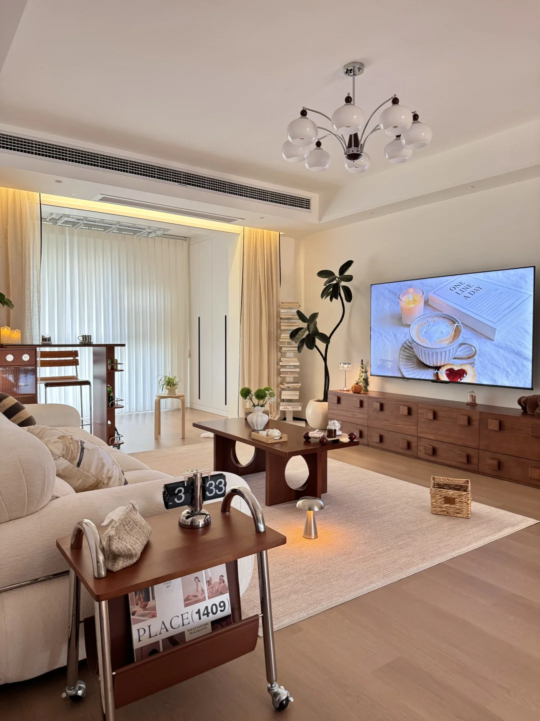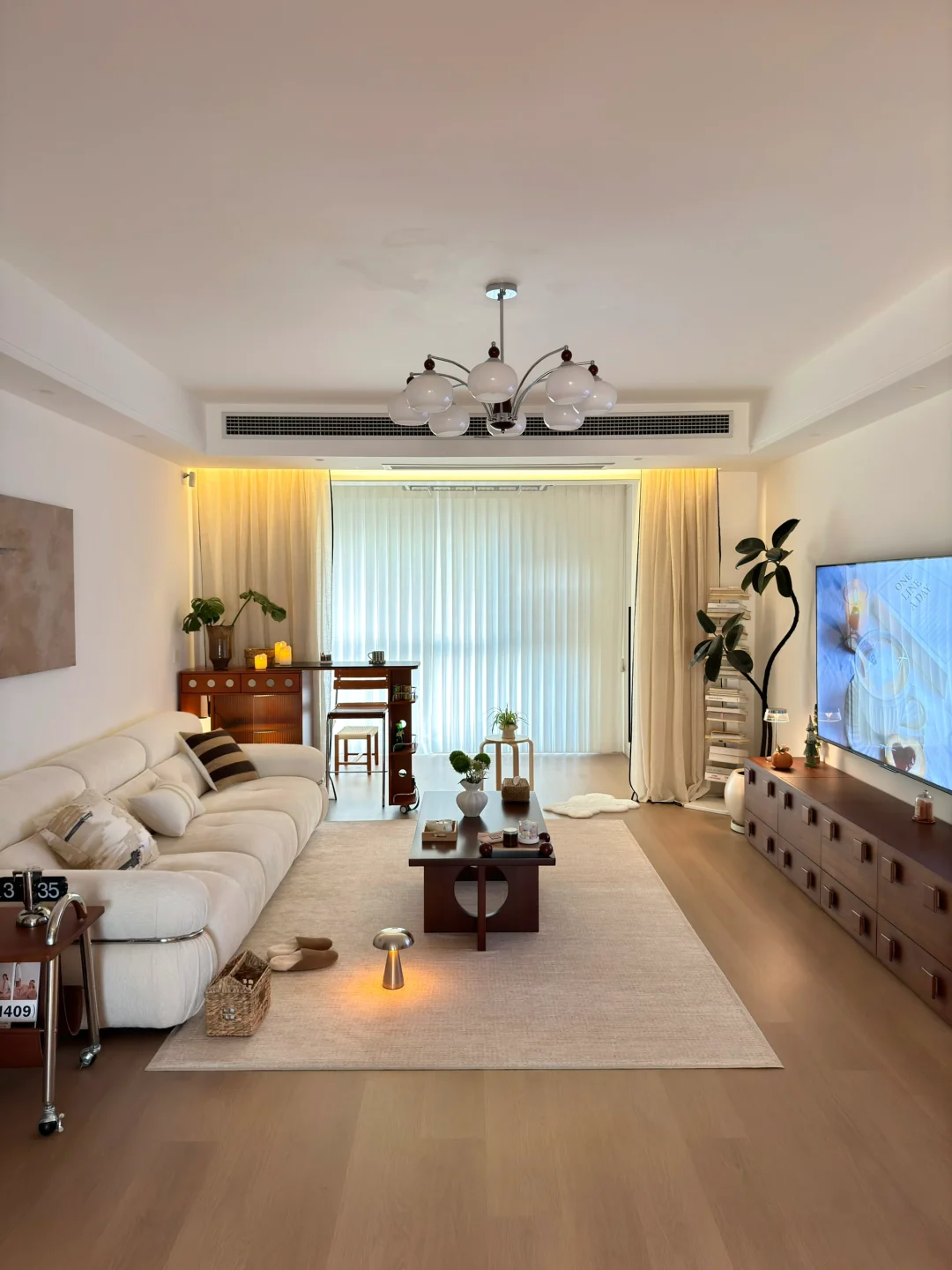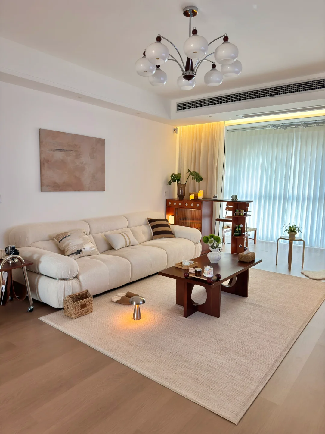 在小县城靠两个人的努力 付首付买下了这个套内110平的房子🏠 历时四个月装修把房子变成了家 入住已经三年啦 沙发角放置伸缩小吧台 收纳客厅小物件 平时坐在这里喝咖啡☕️办公 生活是拿来取悦自己的 偶尔给家里增加点小软装 就能让家里的氛围瞬间不一样了~