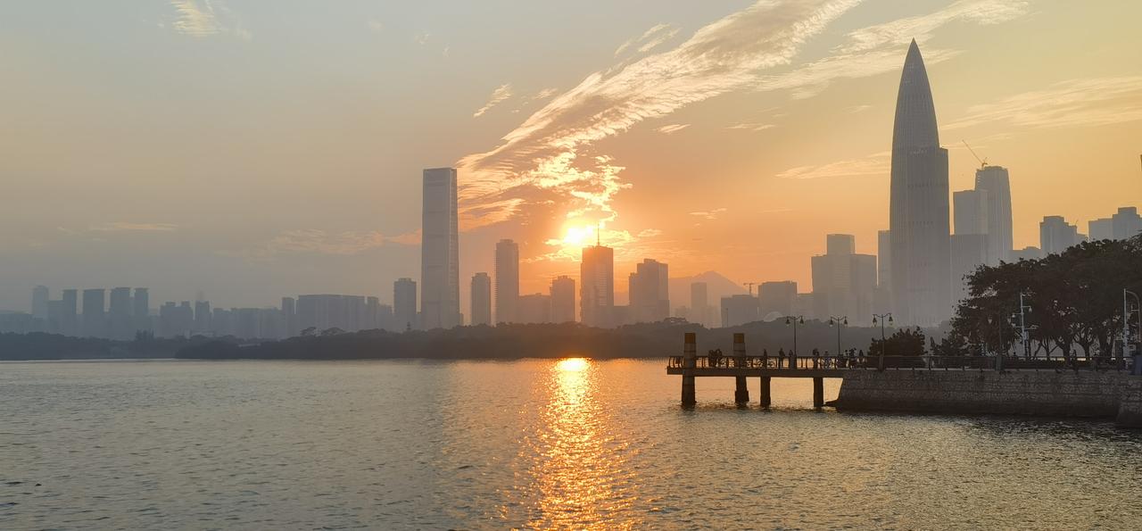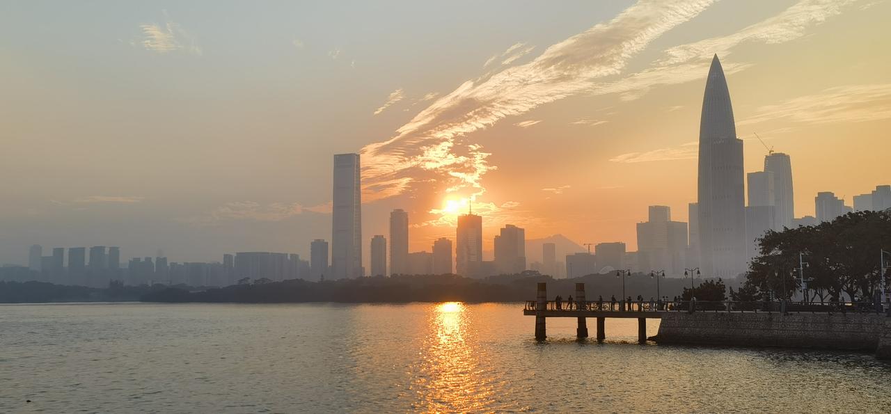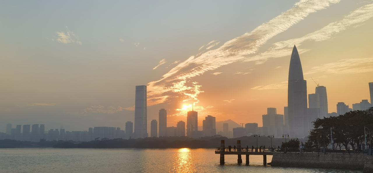 深圳湾冬日拾景 北国皑皑早冰封, 琼瑶飘落叶枯零。 鹏城暖阳天天是, 户外单衣可过冬。 候鸟迁徙群匆匆, 冷暖各知不约同。 深圳湾畔后海景, 落日浮云展大鹏。 轻波涟漪小南风, 景幻别致亦朦胧。 常来常往常惊叹, 最美犹是夕阳红。
