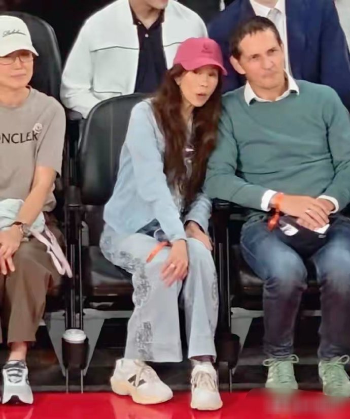 莫文蔚和德国老公在澳门看篮球赛,她的老公面相好慈祥,挺帅气的