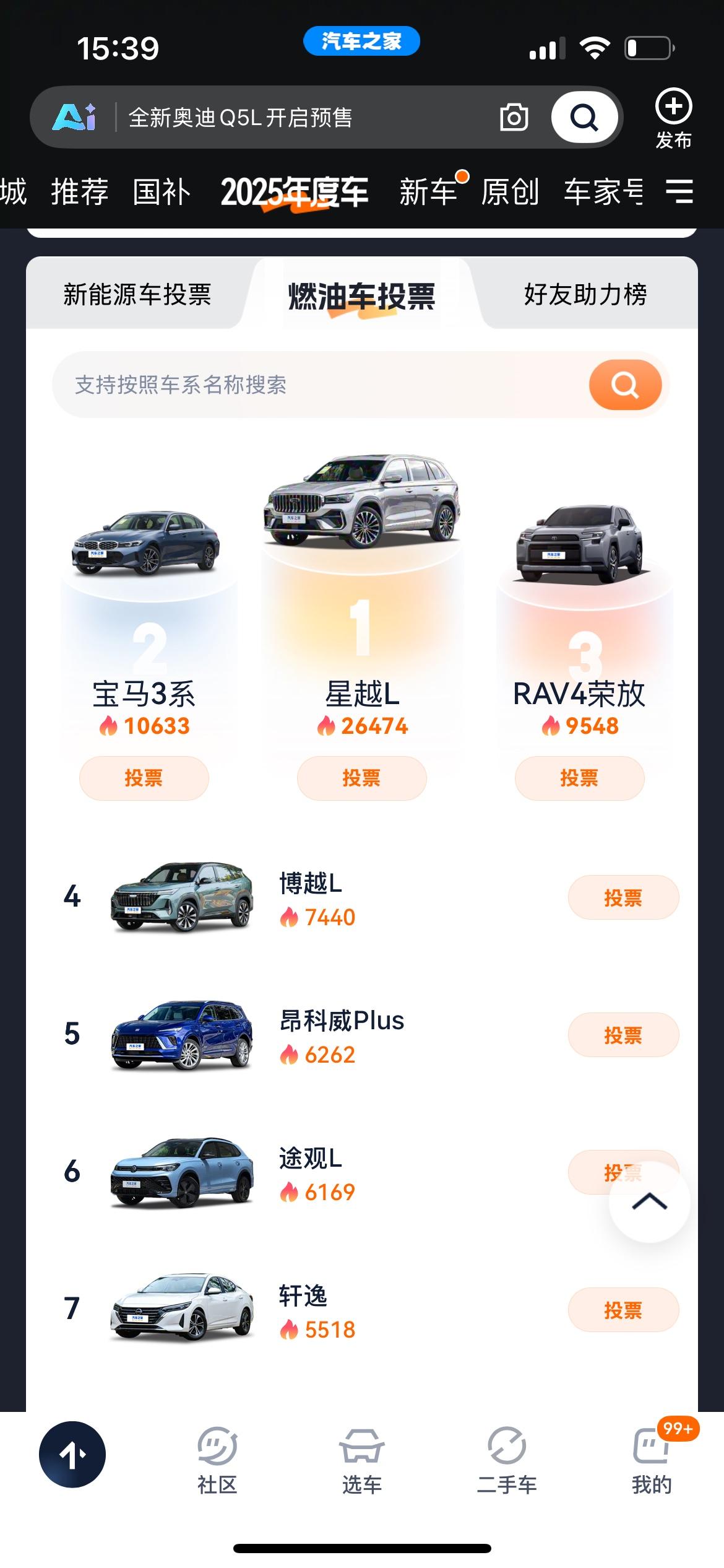 2025年度车,新能源就特斯拉ModelY了,燃油车就吉利星越L了。