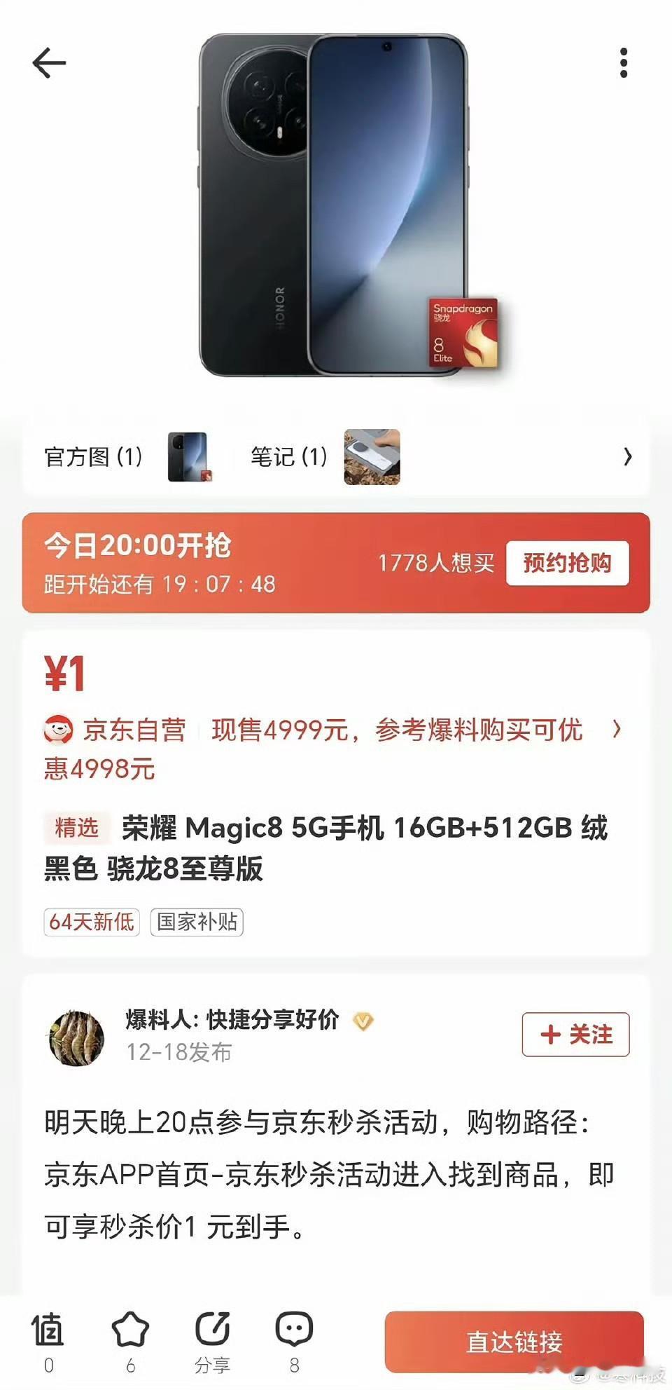 荣耀为求更多销量 着实付出了诸多努力 连一元购Magic8 这类影响活动都有推出 可见荣耀高端系列销量 确实有些低迷 荣耀自身与自媒体评测 皆认为荣耀高端手机Magic系列 着实是非常不错的一款 奈何销量就是上不去 这其实并非荣耀自身问题