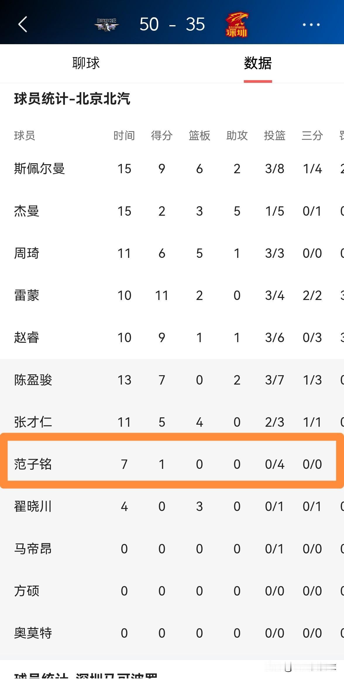我真是要被北京北汽大将范子铭给气炸了!在今天进行的北京北汽和深圳马可波罗的上半场比赛中,范子铭替补出战7分钟,投篮4中0,其中罚球2中1仅仅得到可怜的1分。 说实话,当北京北汽的球迷看到范子铭的表现时会作何感想?是不是也像我一样被气炸了!
