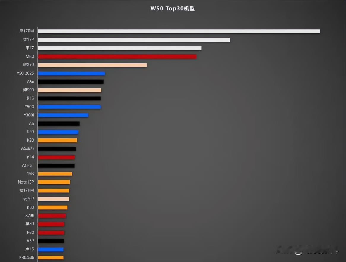 苹果手机 在国内仍是霸主 哪怕mate80系列发布 也未挑战到苹果 华为mate80系列虽火爆 但因芯片等原因 供货慢 销售量不太可观 即便抛开此因 华为mate系列销量也无挑战苹果的实力 从整张图看 国内品牌高端系列 仅华为能跻身榜首前几名 其他位居榜首前几名的 多是中低端手机 苹果在国内 依旧难逢敌手 mate80