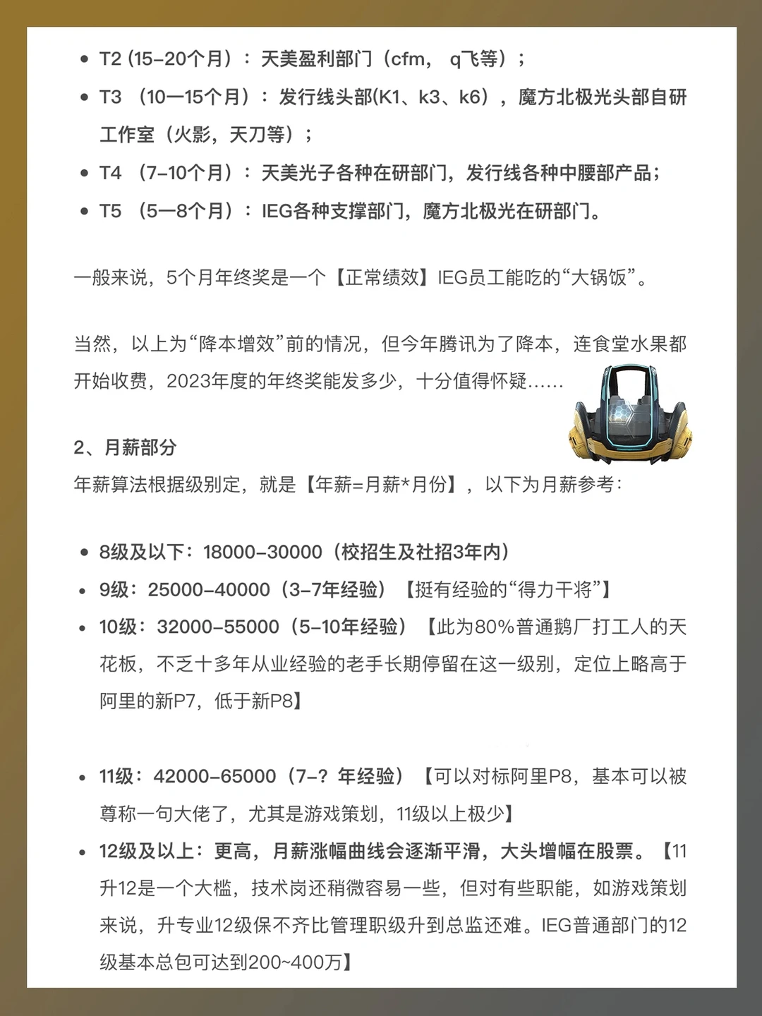 一般来说,5个月年终奖是一个【正常绩效】IEG员工能吃的“大锅饭”。