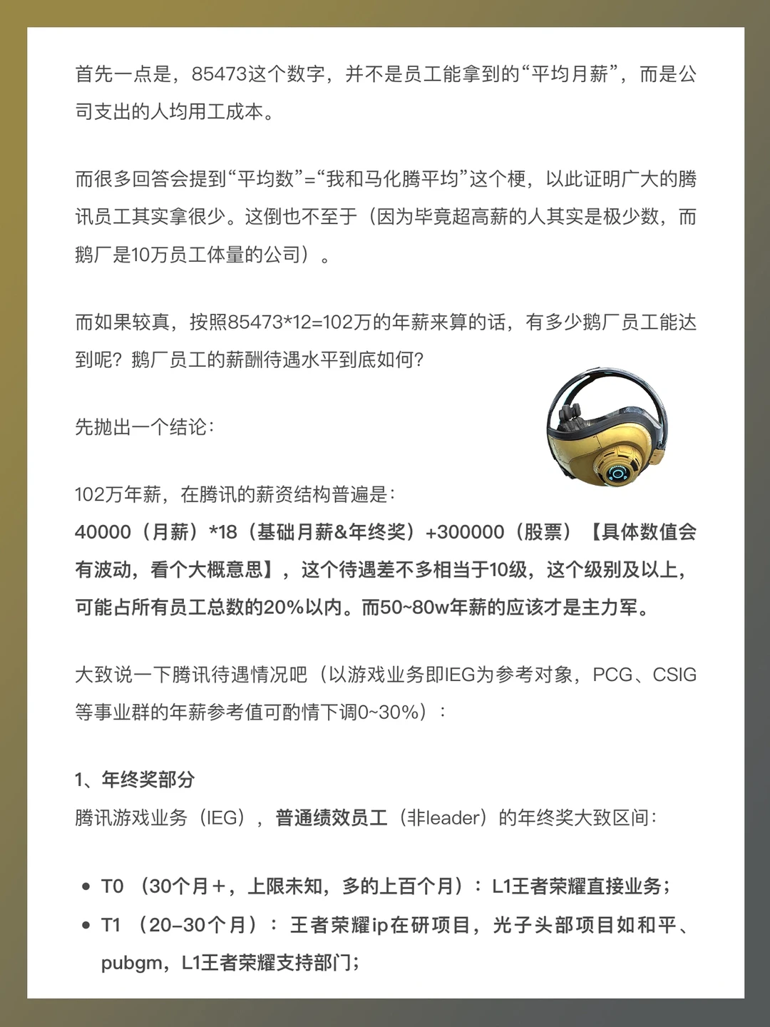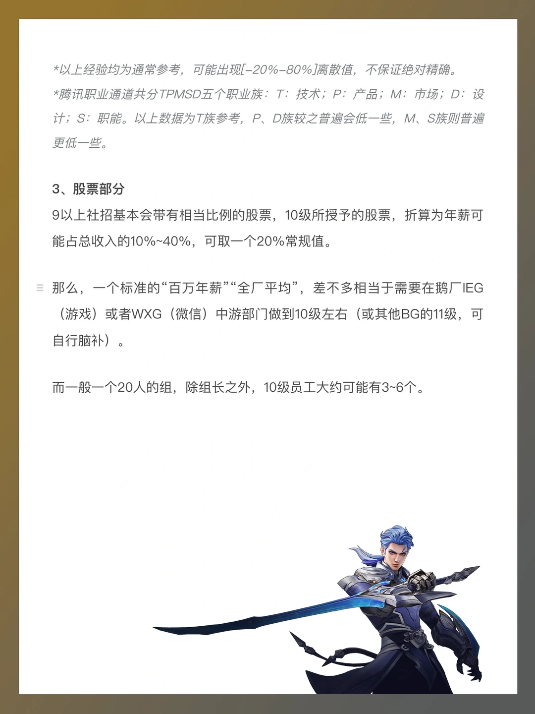 大致说一下腾讯待遇情况吧(以游戏业务即IEG为参考对象,PCG、CSIG等事业群的年薪参考值可酌情下调0~30%):
