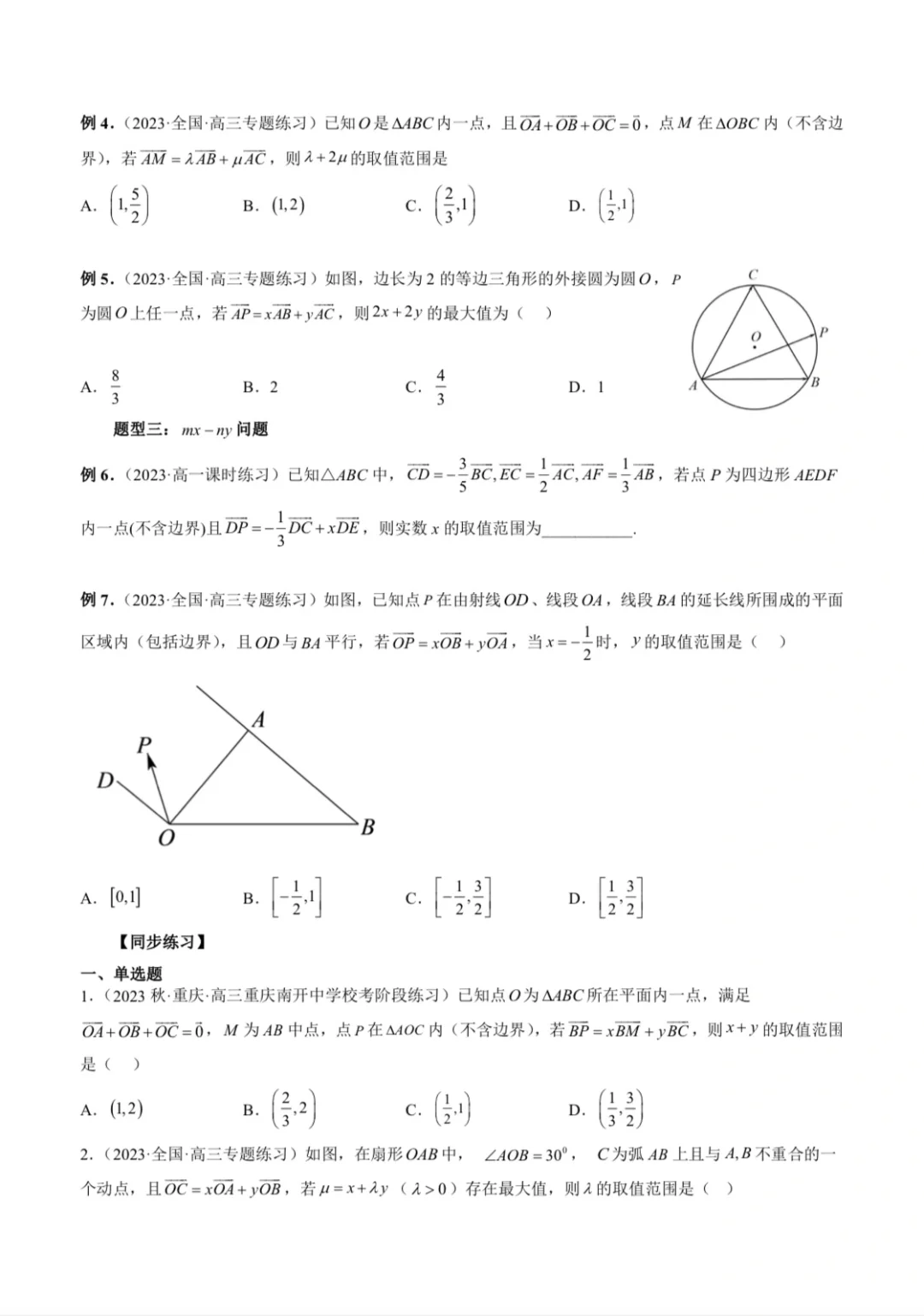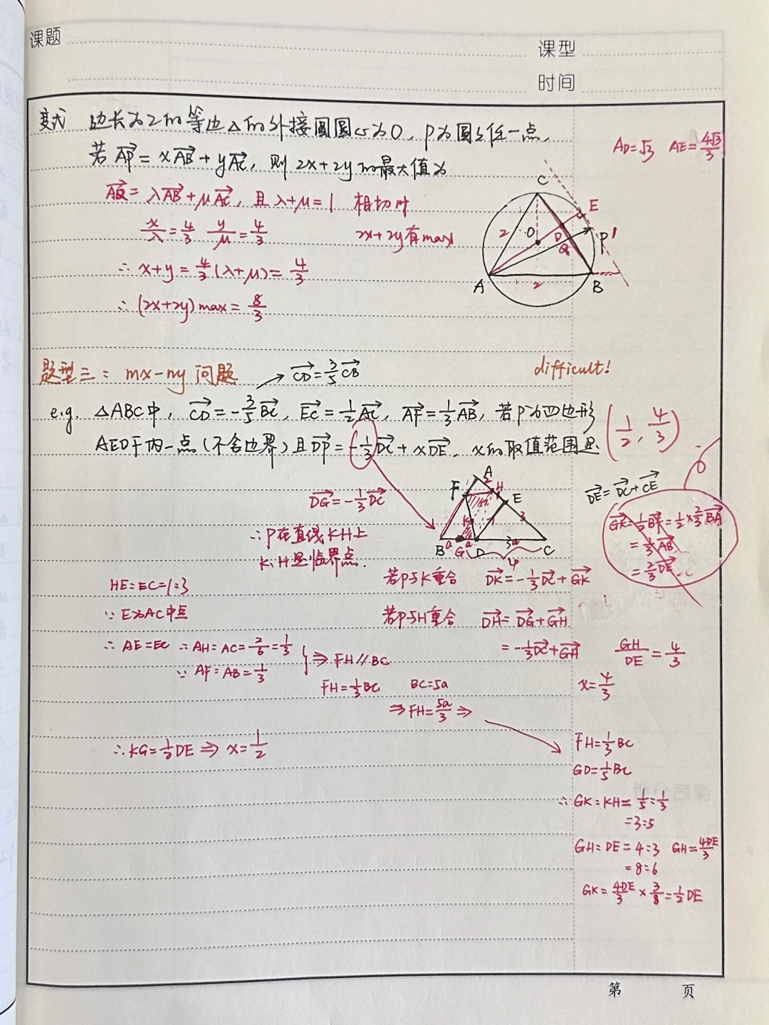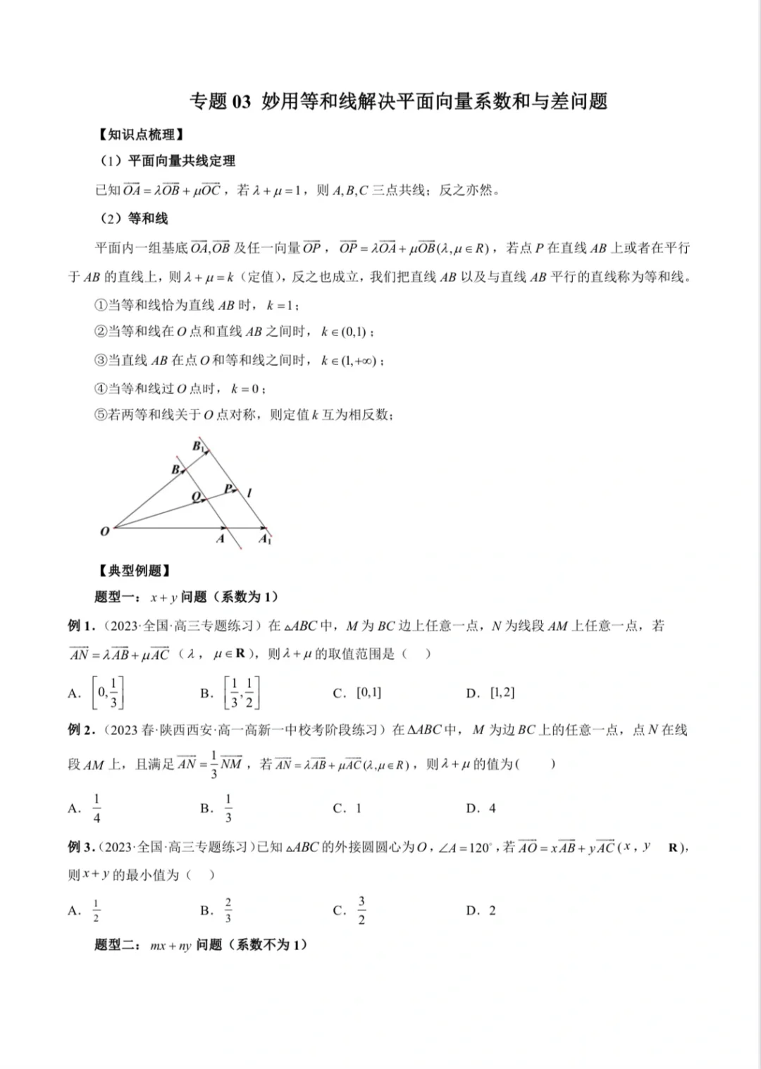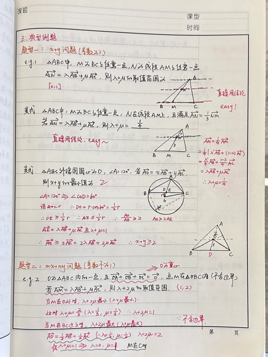 在学了三点共线定理之后再讲解这部分知识会相对容易一些,很多题目就是平面向量的动点问题,有易有难。 还要考查学生初中的基础,特别平行可以推出对应线段成比例,在这里会用的比较多。 这个专题分了三种题型,供学生学习和练习。