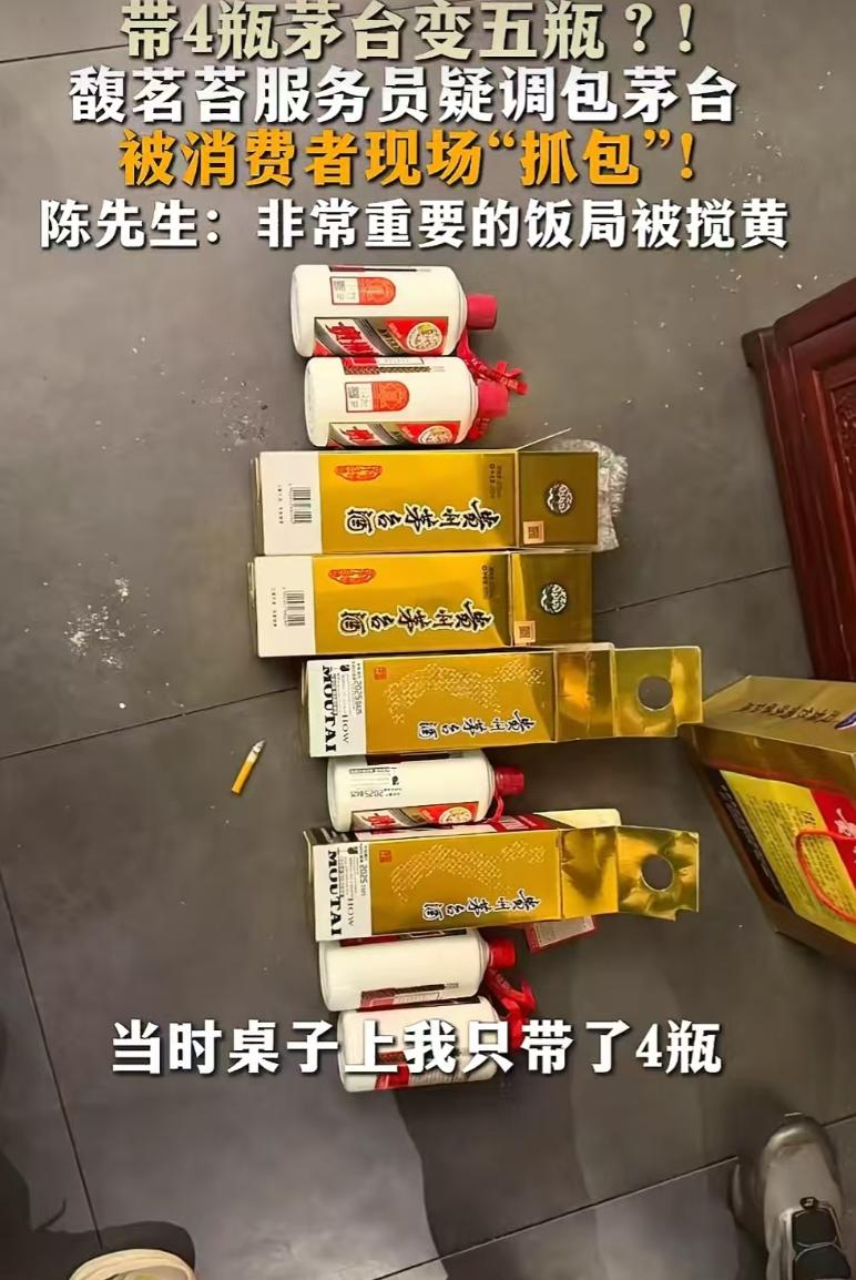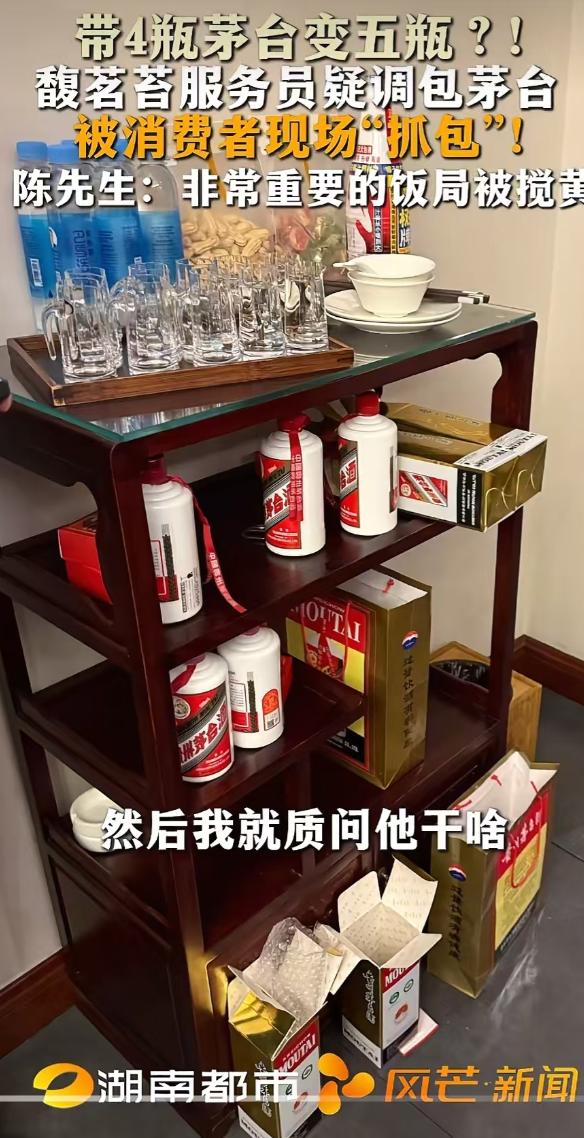 湖南长沙,男子带4四瓶茅台宴请客人,结果发现服务偷偷掉包他的茅台。他质问服务员为什么要这样干?结果服务员转身跑了!男子找到餐馆赔偿,餐馆老板表示服务员是新人,他们也是受害者! 事情发生在11月29日,当事人陈先生是组局的人,既然是商务应酬肯定要重视客人,所以他没让餐馆备酒,自己特意带了4瓶53度的飞天茅台,这酒可不便宜,4瓶加起来市值快一万块了,在酒桌文化里,这带的不光是酒,更是主人的脸面,陈先生本来想着,有好酒陪着这场宴请肯定能顺顺利利的。 可谁也没想到,饭局刚开没多久,负责分酒的那个服务员就透着不对劲,倒酒的时候磨磨蹭蹭,动作不利索也就罢了,还频繁地在包厢里进进出出,一会儿说去拿东西,一会儿又说去催菜,显得特别反常,一开始陈先生和客人都没太当回事,只当是服务员业务不熟练,想着别扫了饭局的兴,就没多说什么。 但陈先生毕竟是组局的,心思比较细,看着服务员一趟趟往外跑,心里渐渐犯了嘀咕。等服务员又一次慢悠悠走进包厢,准备继续倒酒的时候,陈先生起身假装去倒水,特意凑到服务员身边看了一眼,这一看不要紧,当场就火冒三丈,服务员的工作服胸口位置鼓鼓囊囊的,明显藏了东西,看着就不对劲。 陈先生没客气,直接就问对方在干什么,可不管他怎么问,这服务员就跟锯了嘴的闷葫芦似的,低着头一声不吭,陈先生的火气更上来了,耐心也耗没了,直接上手往服务员藏东西的地方一摸,竟然当场从他衣服里掏出了一瓶茅台! 这还不算完,他转头看向桌上,更荒唐的一幕出现了,原本自己带来的4瓶茅台,桌上竟然摆着5瓶,多出来的那瓶一看就不是自己带的,明摆着是被掉包了,至少有两瓶酒已经被换了。 这一下陈先生彻底怒了,好好的宴请被搅成这样,自己的面子也被丢尽了,他当场就要求服务员把餐馆老板喊来对质,必须给个说法,可让人没想到的是,这服务员前一秒还唯唯诺诺的,后一秒趁着要出包厢叫老板的空档,竟然直接脚底抹油,跑了!跑得那叫一个快,等陈先生反应过来追出去,人早就没影了。 服务员一跑整个饭局的气氛瞬间跌到了冰点,本来大家还在开开心心聊天喝酒,经这么一闹,谁还有心思吃饭?桌上的好菜再精致,也变得索然无味。陈先生又气又尴尬,客人也觉得没面子,一场关乎面子和利益的重要商务聚餐,就这么不欢而散了。 气不过的陈先生,转头就找到了这家餐馆的老板肖总,其实陈先生是这家店的常客,跟肖总私下里关系还不错,本来想着熟人熟店肯定放心,没成想偏偏在这儿栽了大跟头。 面对陈先生的问责,肖总一开始也是一肚子委屈,一个劲地解释,说那个跑路的服务员是刚招来的新人,还没过试用期,店里对他的监管确实不到位,自己也是被蒙在鼓里,算是被骗的“受害者”。 可陈先生根本不接受这个说法。在他看来一万块钱的酒虽然不少,但还不是最关键的,关键是这场宴请的客人被怠慢了,这份损失是没法挽回的。 他觉得餐饮企业既然招了员工,就该管好,连员工最基本的廉洁都约束不了,“新人”这两个字根本不能当免死金牌,明显是店里的管理出了漏洞,最后却让顾客来承担后果,这就是信任危机。 好在后来有调解员介入帮着双方协商,这场关于面子和损失的拉锯战才算有了结果,肖总也慢慢意识到了问题的严重性,知道光靠辩解没用,最终拿出了一套还算诚恳的解决方案,不管陈先生带来的那4瓶酒被换成了什么样,是真的还是假的,店里都照单全收,另外肖总一次性赔偿陈先生一万元现金其中多出来的部分,折算成未来的餐费,权当是请陈先生和朋友们再聚一次弥补这次的不愉快。 陈先生也是个讲理的人,见老板不再推诿态度也诚恳,就接受了这个解决方案,至于那几瓶被掉包的酒到底是真茅台还是勾兑的假酒,这时候已经不重要了,这场风波最后算是以商家“花钱买教训”画上了句号,但那个跑掉的服务员,却给餐饮行业的信任度上狠狠划了一刀。 说句实在话不管是不是新人,服务员干出这种掉包客人财物的事都太过分了,而餐馆的管理漏洞也确实存在,不能把责任全推给“新人”。 这事儿也给所有开店的老板提了个醒,员工招聘和监管一定要到位,不然砸的是自己的招牌,也给去外面吃饭的人提了个醒,哪怕是熟人店,贵重物品和自带的东西也得看紧点,免得遇到这种糟心事。