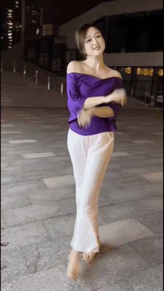 卡通脸美女, 超级可爱动人! 有一点想不通, 她的上衣好像 是随意的半截穿搭, 她是怎么固定在身上的, 左摇右晃都掉不下来!
