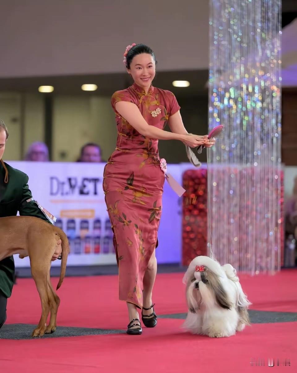 霍思燕瘦了,她的爱犬像她一样优雅! 厉害!霍思燕的爱犬在国际犬展拿下冠军,她自己也瘦下来了,好友呀…… 大概,这就是最优雅的东方美女大吧!霍思燕一身红色旗袍,身材玲珑有致。 长发盘起,面容富贵,连牵狗的动作都足够优雅。 这是霍思燕自己家的狗狗霍豆豆,他是真的很爱狗,陪着狗狗成长,就像照顾自己的孩子一样。 狗狗和她也很默契,舞台上步伐同步,一样的优雅。霍思燕 明星养宠物
