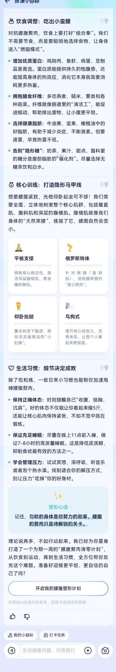 这个减肥搭子我是真的想要蚂蚁阿福,我的私人健康管家。自从有了蚂蚁阿福,健康管理直接躺赢! “阿福,腰腹赘肉咋减?”秒出专属塑形计划,饮食上盯紧优质蛋白和膳食纤维,运动里安排平板支撑、俄罗斯转体精准练核心,连日常体态和睡眠都不忘提醒。“阿福,久坐腰酸背痛咋办?”立刻分析活动量,给出“少久坐、多活动”的对症建议,像个贴心军师随时支招。拍个蒜蓉粉丝娃娃菜、炸小鱼问健康度,阿福马上拆解:蒸菜低脂营养,炸物解馋可以但别贪多,热量营养数据一目了然,控脂党狂喜。血压血糖能绑定设备实时监测,数值异常及时提醒;皮肤科就诊、身体小疙瘩分不清?问阿福都能快速解答,24小时在线超靠谱。不用瞎搜攻略,不用跑医院排队,一个蚂蚁阿福,承包日常健康大小事!