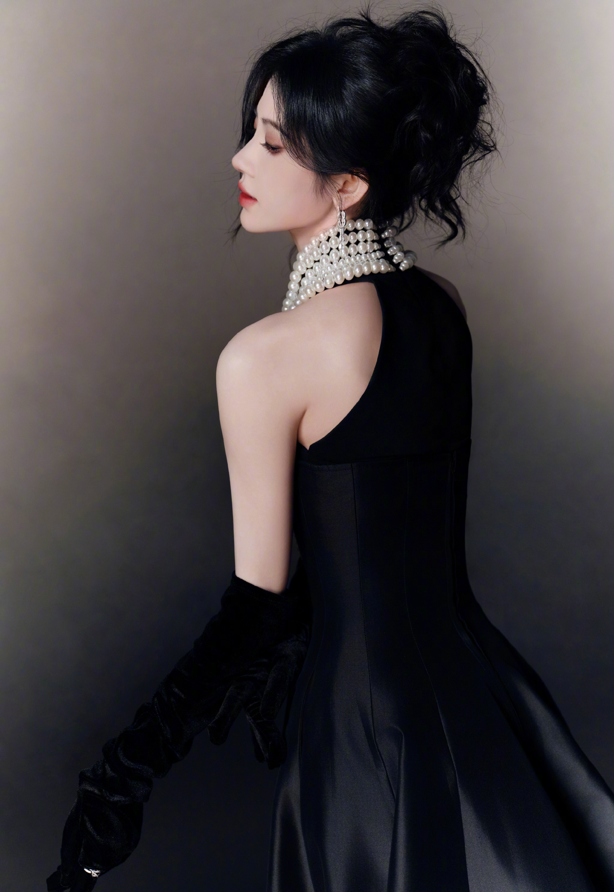 鞠婧祎珍珠名伶 鞠婧祎今日星光大赏出图,黑色礼服,珍珠项链、丝绒手套,化身复古冷艳的黑玫瑰。鞠婧祎