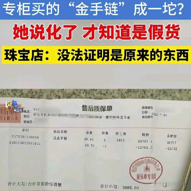 浙江杭州,丁女士见金价不错,想把旧金首饰置换,她联系回收黄金的朋友,在小区保安亭验货,朋友用火烧验金时,一串手链竟像蜡烛似的化掉后粘成了一坨,朋友称是假货,丁女士懵了,这手链是在银泰专柜用旧金置换的,还有售后质保单。她到店里,店员称找不到销售记录,总部又说法不一。记者介入后,品牌方却推诿责任,丁女士维权陷入困境。 丁女士当时就懵了,她怎么也没想到,在正规专柜置换的手链会是假的。 她赶紧拿着手链和质保单去了店里,想着店员肯定能给她个说法。 可到了店里,店员的态度却让她心凉了半截,店员说找不到销售记录,还说这手链的情况他们也不清楚。 店员找不到销售记录,这是不是就意味着不用负责了? 找不到销售记录不能成为逃避责任的借口,只要有证据证明手链是在这家店买的,店家就得承担相应责任。 丁女士不甘心,又联系了总部。 总部那边说法又不一样了,坚称手链是真的,这前后矛盾的说法,让丁女士更糊涂了,她觉得自己就像个皮球,被店员和总部踢来踢去。 记者听说这事后,介入调查。 本以为有了记者帮忙,事情能顺利解决,可品牌方却开始各种推诿,一会说这事不归他们管,一会又说需要时间调查。 丁女士无奈又憋屈,她觉得自己太倒霉了,本来只是想置换个金首饰,没想到惹出这么多麻烦。 这期间,丁女士也咨询了律师。 律师告诉她,因为她买手链已经超过了六个月的举证倒置期,现在得她自己证明手链是假的,而且是在专柜买的。 这难度可不小,但丁女士没有放弃。 她打算找专业机构对手链进行鉴定,只要鉴定结果是假的,她就有底气维权了。 如果鉴定结果手链是假的,丁女士能要回加工费吗? 根据相关法律规定,如果商家提供的是假货,消费者有权要求商家退还加工费。因为商家没有按照约定提供合格的商品。 丁女士还了解到,如果证实手链是假的,她不仅能要回加工费,还能主张三倍赔偿。这可是个好消息,她觉得自己的努力总算有了盼头。 不过,她又担心专柜变成加盟店后,品牌方会不认账。律师告诉她,只要能证明加盟店和品牌方有关联,就能找它们追责。 现在。丁女士就盼着鉴定结果能尽快出来。 她每天都在想,等结果出来了,一定要让那些不负责任的商家受到惩罚。 她也想提醒其他消费者,以后买东西一定要留好证据,遇到问题要勇敢维权。 大家都在讨论,商家到底该不该为卖出的假货负责?品牌方和加盟店之间又该如何划分责任? 有人觉得商家就是故意卖假货,为了赚钱不择手段。 也有人觉得可能是中间哪个环节出了问题,商家也不一定知情。 商家卖假货,除了赔偿消费者,还会受到其他处罚吗? 根据《消费者权益保护法》,商家卖假货除了要承担民事赔偿责任外,还可能面临行政处罚,比如罚款、没收违法所得等。情节严重的,还可能被吊销营业执照。 从法律角度来看,丁女士作为消费者,有权利购买到合格的商品。 而商家,有义务保证商品的质量和真实性,如果商家违反了这一义务,就应该承担相应的法律责任。 丁女士认为自己是在正规专柜买的手链,有质保单为证,商家应该负责。而商家却以各种理由推诿,不想承担责任。 这就需要法律来明确双方的权利和义务,给消费者一个公正的说法。 根据《消费者权益保护法》第五十五条规定,经营者提供商品或者服务有欺诈行为的,应当按照消费者的要求增加赔偿其受到的损失,增加赔偿的金额为消费者购买商品的价款或者接受服务的费用的三倍;增加赔偿的金额不足五百元的,为五百元。 如果丁女士能证明手链是假的,且商家存在欺诈行为,那么她就有权要求三倍赔偿。 根据《产品质量法》第四十条规定,售出的产品有下列情形之一的,销售者应当负责修理、更换、退货;给购买产品的消费者造成损失的,销售者应当赔偿损失: (一)不具备产品应当具备的使用性能而事先未作说明的; (二)不符合在产品或者其包装上注明采用的产品标准,不符合以产品说明、实物样品等方式表明的质量状况的; (三)不符合以产品说明、实物样品等方式表明的质量状况的。 如果手链是假的,显然不符合其应有的质量状况,商家应该承担相应的责任。 消费者在购买商品时一定要谨慎,保留好相关证据。遇到问题要及时维权,不要让自己的权益受到侵害。