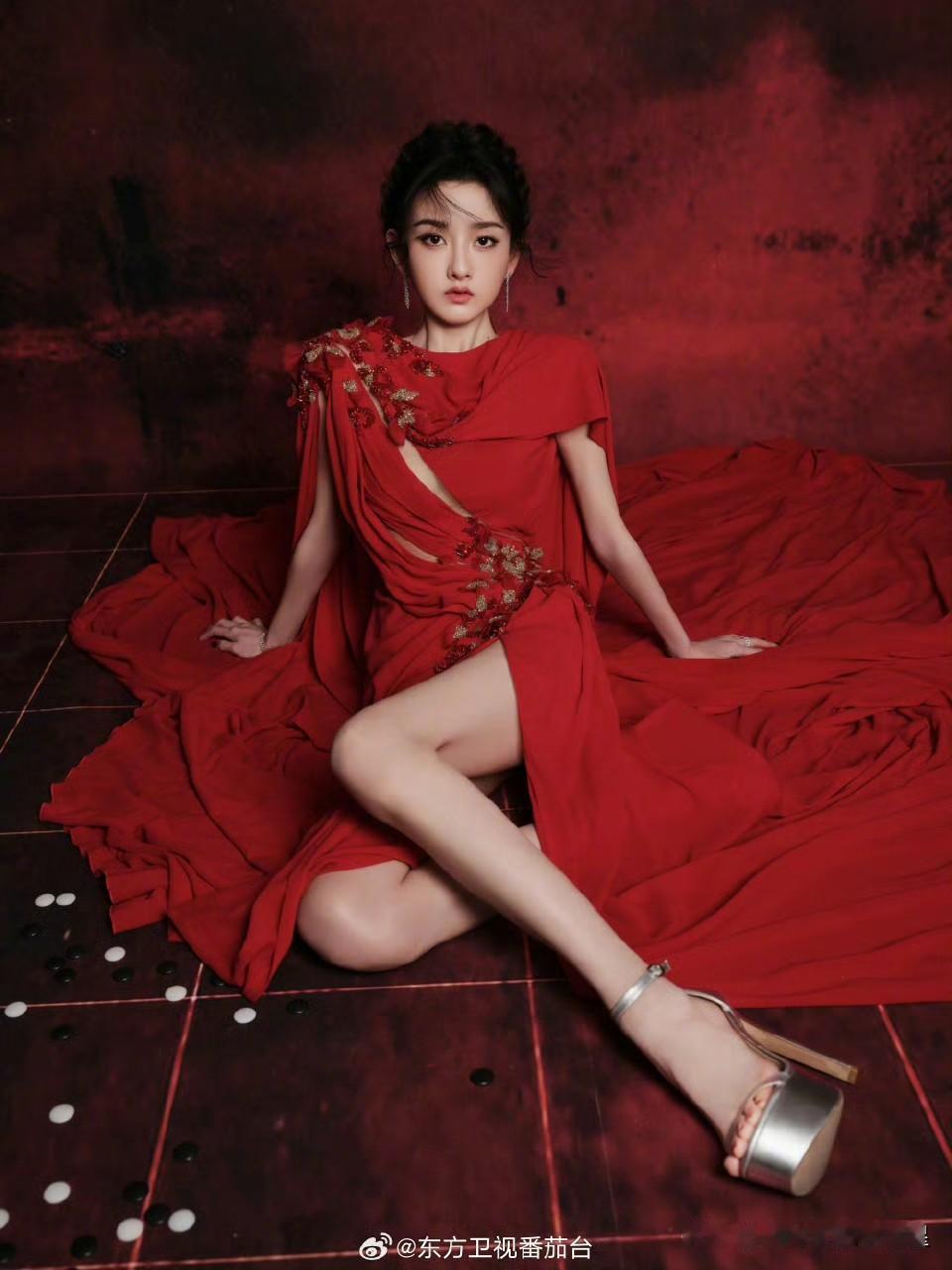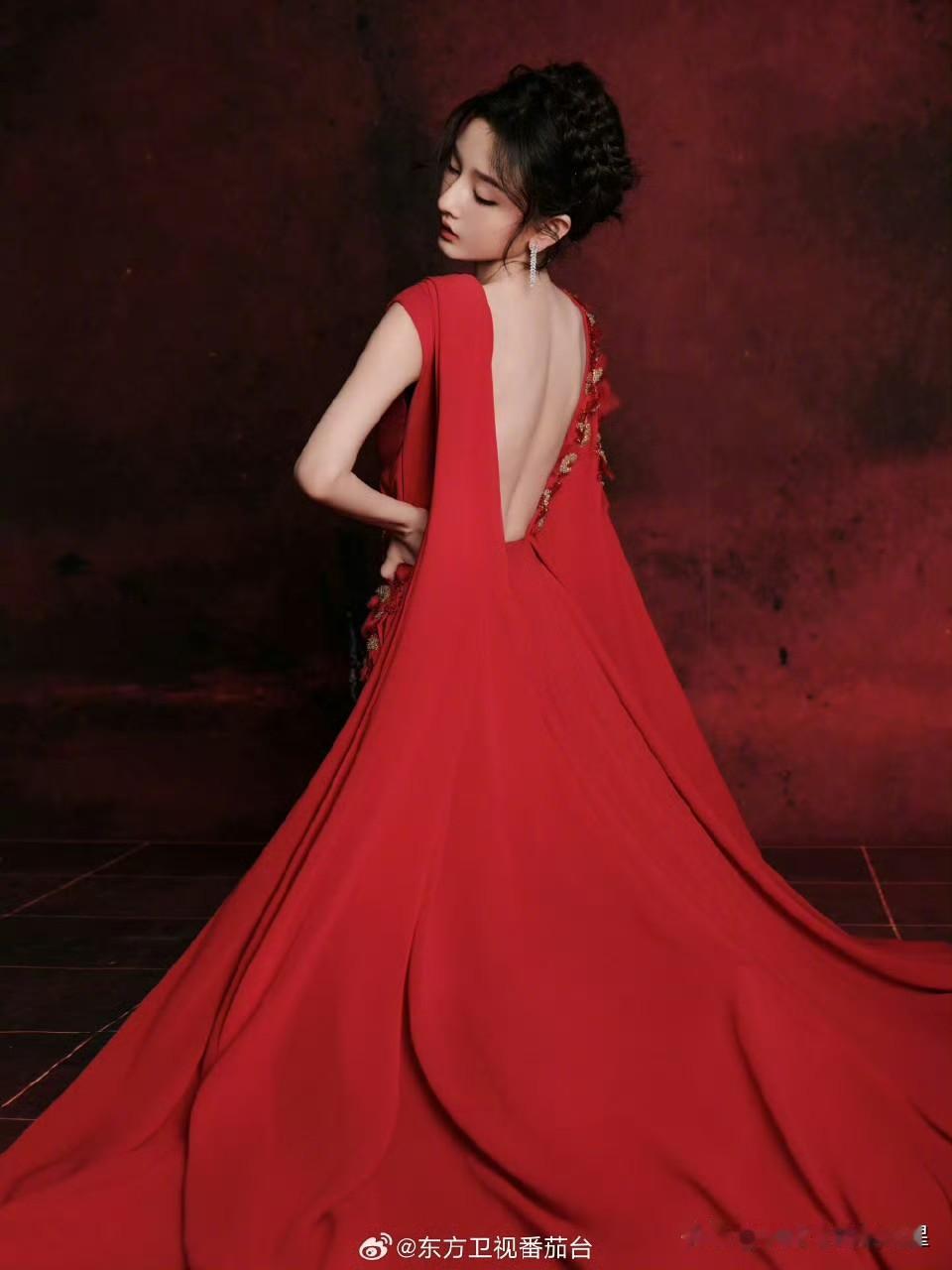 @宋祖儿lareina ×星光大赏红毯,深开衩红裙,裙身上的褶皱和钻饰细节增加了华丽感,红裙配上她自带的灵气,整个人散发着一种明艳大气的复古感。