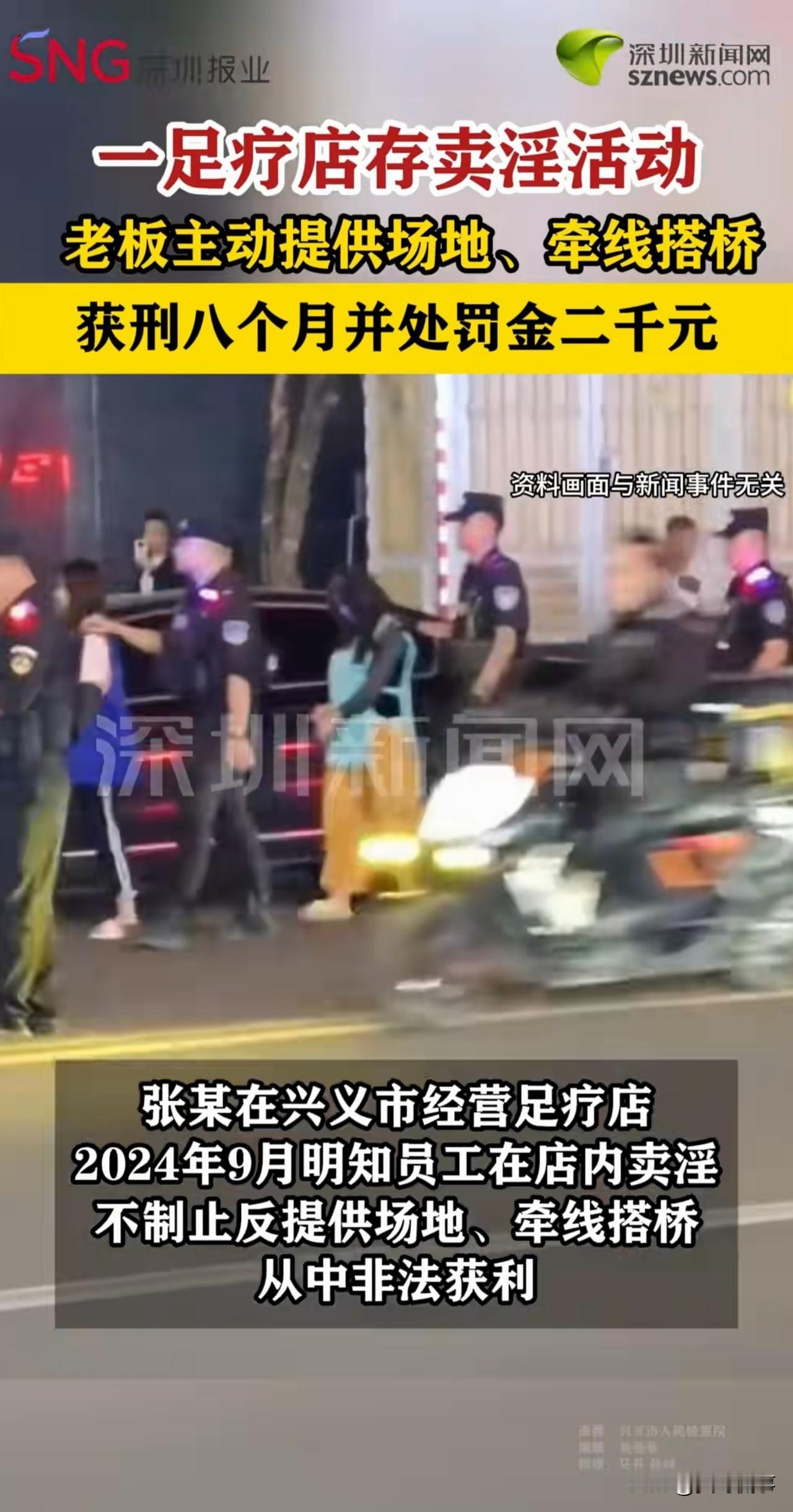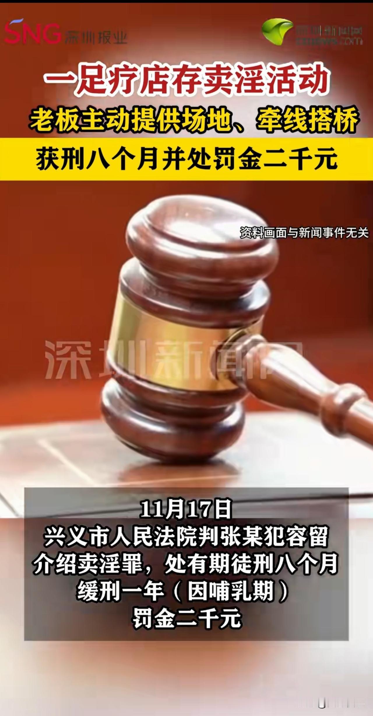 赚200元赔上自由!足疗店女老板因放任员工“卖淫”搞快钱,最终锒铛入狱。她的经历再次警示我们:有些法律红线,千万别碰! 具体案情:2023年10月,女子张某在贵州兴义开了家足疗店,招聘了女子贺某和龚某两位员工为客人做按摩。 一开始,生意按部就班,按摩费由双方五五分成,虽然赚得不算多,但好在安稳。 可过了不到一年,画风突然变了!2024年9月,张某发现贺某和龚某居然在店里偷偷搞起了卖淫勾当。 换作正经生意人,肯定第一时间制止、报警,可张某看着眼前的“快钱”,心中也动起了歪念——不仅假装没看见,还主动给两人提供场地、搭线介绍嫖客。 然而,这第一单生意刚干完,拿到200元的“收益”,警方在排查时就发现了这家足疗店的违法行为,当场立案侦查。 经传唤,张某到案并供述了她容留、介绍员工卖淫的事实。 案件移交至检察院,检方提起公诉。2025年11月17日,当地法院作出判决,张某犯容留、介绍卖淫罪,获刑有期徒刑8个月,缓刑1年(因其处于哺乳期),并处罚金2000元。 这样一来,张某的生意不仅黄了,还背上了案底,真是捡了芝麻丢了西瓜。 可能有人觉得,张某不就是提供了个场地、帮着牵了个线吗?才赚200元,至于说要判刑吗? 1. 容留、介绍卖淫,是犯罪,而不是小事! 《最高人民法院、最高人民检察院关于办理组织、强迫、引诱、容留、介绍卖淫刑事案件适用法律若干问题的解释》第8条规定: 引诱、容留、介绍他人卖淫,具有下列情形之一的,应当依照刑法第359条第1款的规定定罪处罚: (一)引诱他人卖淫的; (二)容留、介绍二人以上卖淫的…… 本案中,张某同时容留并介绍,而涉及2人以上,已经达到了刑事立案标准。 至于只赚200元,虽然金额较小,但不影响定罪,顶多只在量刑上存在一定影响 。 2. 量刑轻重有其标准,在这些情况下会加重处罚 根据《刑法》第359条规定,容留、介绍卖淫罪一般会判处5年以下有期徒刑、拘役或者管制,并处罚金; 情节严重的,比如容留、介绍多人卖淫,或者介绍未成年人、孕妇等特殊人群卖淫,非法获利数额大,会判5年以上有期徒刑 。 本案中,张某之所以被判8个月有期徒刑,还适用缓刑。 一方面是因为她涉及的人数、非法获利数额不算特别大。 另一方面是她处于哺乳期——法律对哺乳期妇女有特殊的从宽处理规定。 但这可不是“免罪金牌”,只是在刑罚执行上给予照顾,该怎么定罪就怎么定罪。 3. 为什么要严厉打击容留、介绍卖淫行为? 首先,卖淫最直接一点的,就是违背公序良俗、破坏家庭稳定,破坏社会秩序。 其次,卖淫还是传播性病、艾滋病的温床,每年有很多人因为卖淫嫖娼而感染疾病。 再次,卖淫会传播错误导向,助长不劳而获的不良风气。 最后,卖淫从来不是孤立的“个人行为”,背后往往牵扯着更严重的犯罪链条。 有相当大的群体是被诱骗、胁迫甚至拐卖而来,遭受人身控制、暴力殴打等残酷对待,沦为他人牟利的工具,尤其是未成年人卷入后,一生都将蒙上阴影。 也正因此,这种行为一定要严厉打击,绝对不能手软。 总之,张某的案例,也给所有生意人敲响了警钟:我们赚钱可以,但必须要走正道,因为只有这样,生意才能做得安心、做得长久。 倘若有些人想剑走偏锋,可能一时会尝到些许“甜头”,但最终都会变成“苦果”。 希望大家都能引以为戒! 对此,你怎么看?欢迎大家在评论区留言。来源:深圳新闻网 2025.12.20