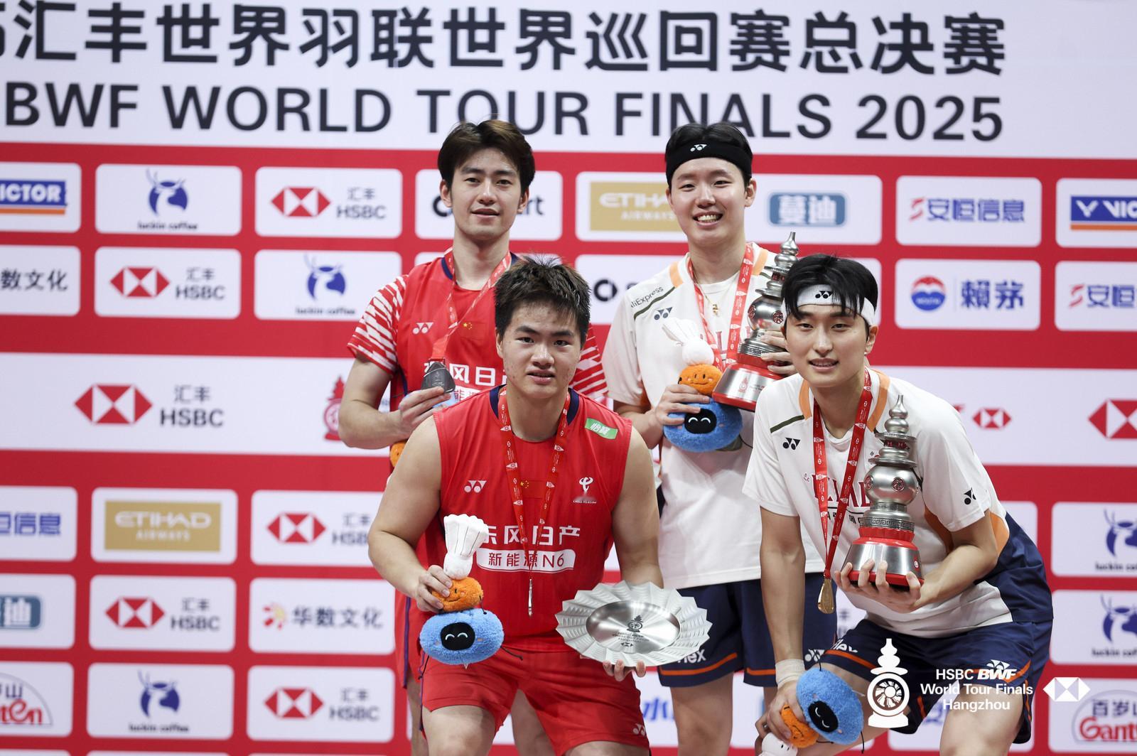 2025年世界羽联年终总决赛 最终赛果:韩国队3冠,中国队1冠4亚,法国队1冠,日本队1亚男单|🏆小波波夫🇫🇷|🥈石宇奇🇨🇳女单|🏆安洗莹🇰🇷|🥈王祉怡🇨🇳男双|🏆徐承宰/金元浩🇰🇷|🥈梁伟铿/王昶🇨🇳女双|🏆白荷娜/李绍希🇰🇷|🥈福岛由纪/松本麻佑🇯🇵混双|🏆冯彦哲/黄东萍🇨🇳|🥈蒋振邦/魏雅欣🇨🇳凤凰组合夺赛季第8冠