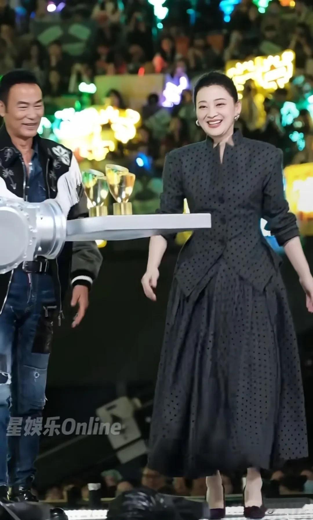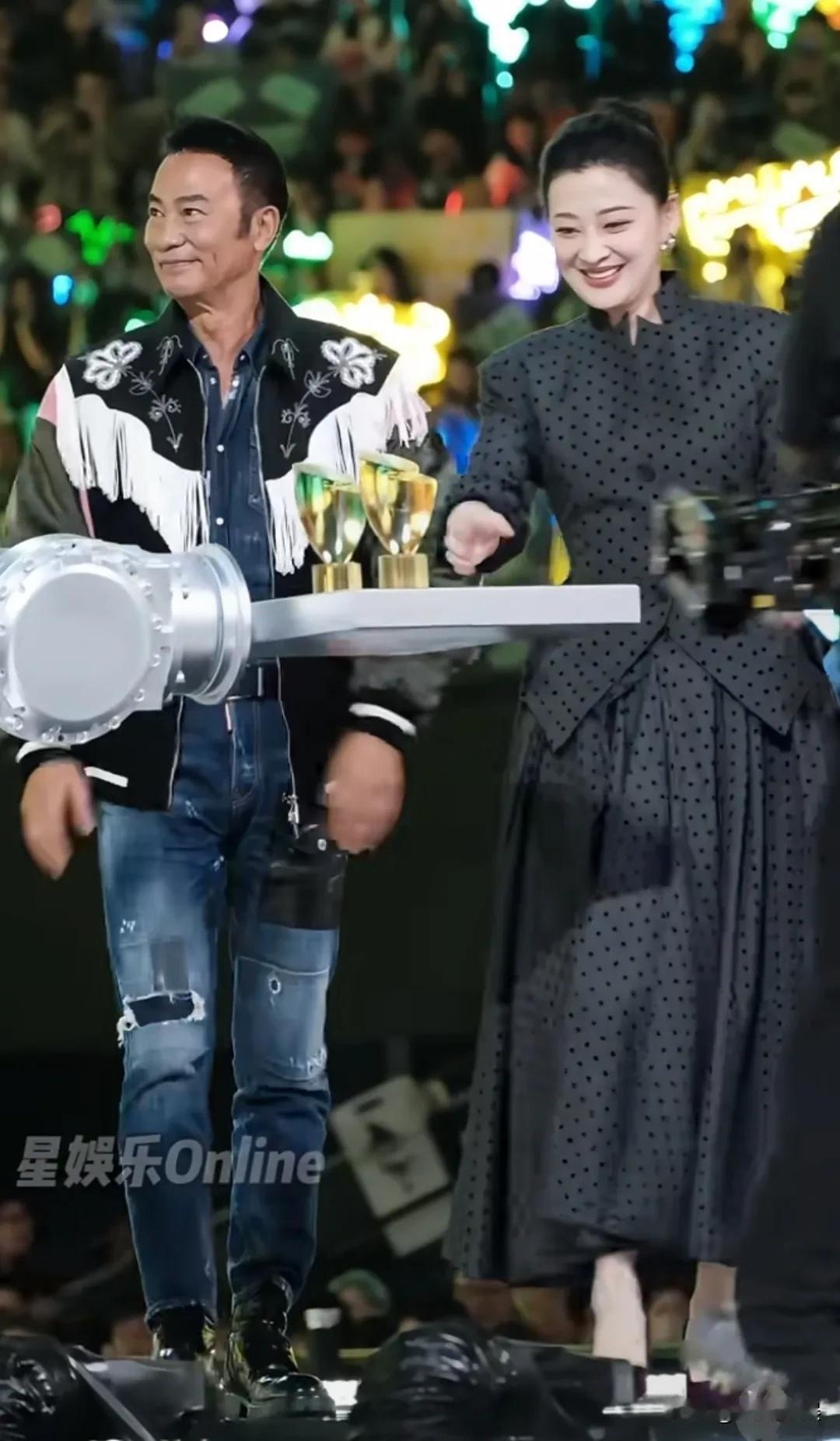 梅婷的衣品终于找对赛道了,终于不再露腰、露肩膀,而是以端庄得体为主。 这次出席“星光大赏”活动,和任达华同框出场,她扎着丸子头,露出饱满的额头,穿着一套深色波点裙装,腰部设计好美,身材曲线绝了,感觉比露腰来得更有魅力。 笑靥如花,温柔和美,这样的梅婷在台上美到发光。 一旁70岁的任达华,保养得也非常好,身材笔挺,肌肉结实,看起来还好有活力,比实际年龄年轻多了。 看俩人下台时,梅婷穿着高跟鞋小心翼翼的,任达华马上当起了护花使者,扶着她下台,感觉任达华好绅士啊! 果然爱老婆的男人,都不会差到哪去!