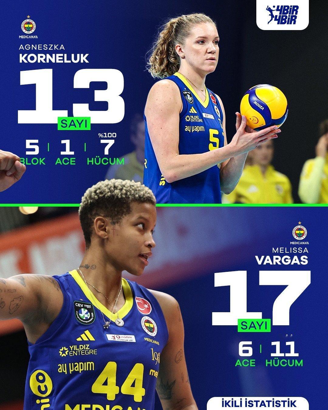 费内巴切3比0击败第六的尼吕费尔!瓦尔加斯和费多罗夫采娃(更新:站拦姐一个)一共