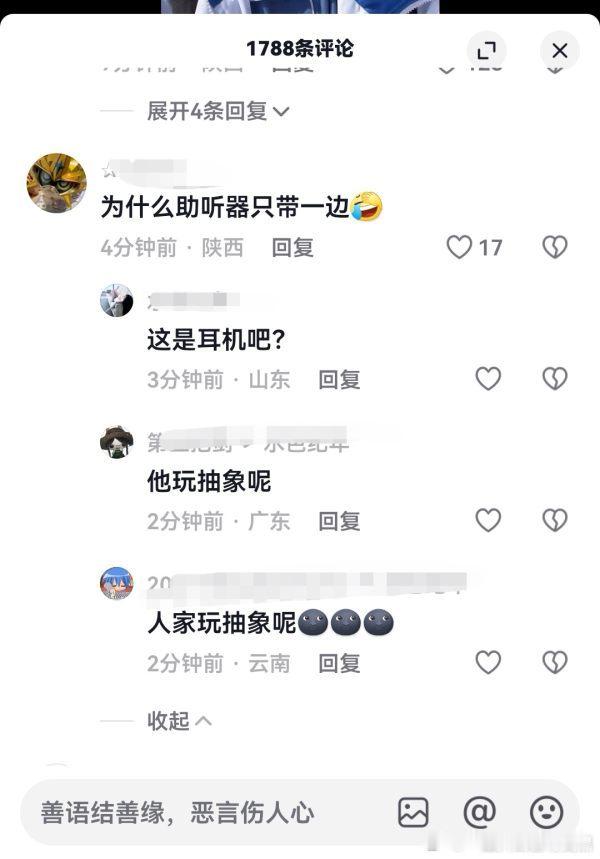 【】博主带个耳机说是助听器 被点出来就是玩抽象 拿个烂梗当你恶趣味的挡箭牌 字里行间都是在拿残障人士玩梗 加油吧抖人 你们也就只会玩烂梗了