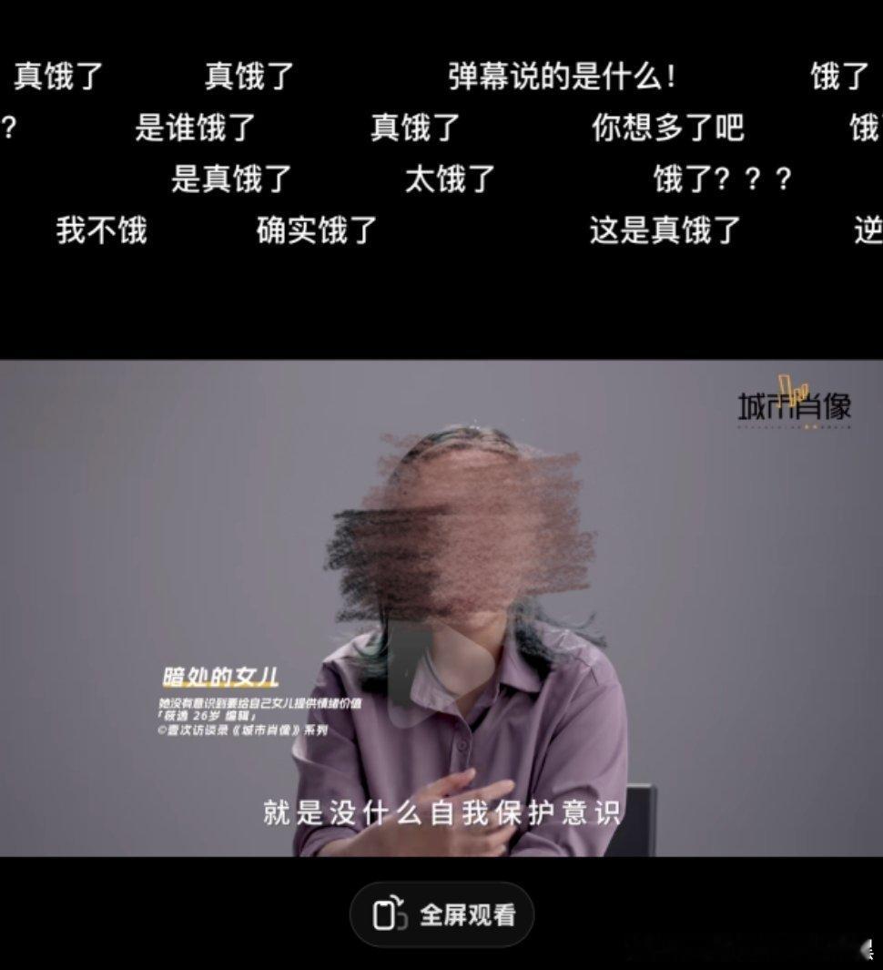 视频里的内容是这位女士正在描述差点被人qj的事情 弹幕上却是一片饿了