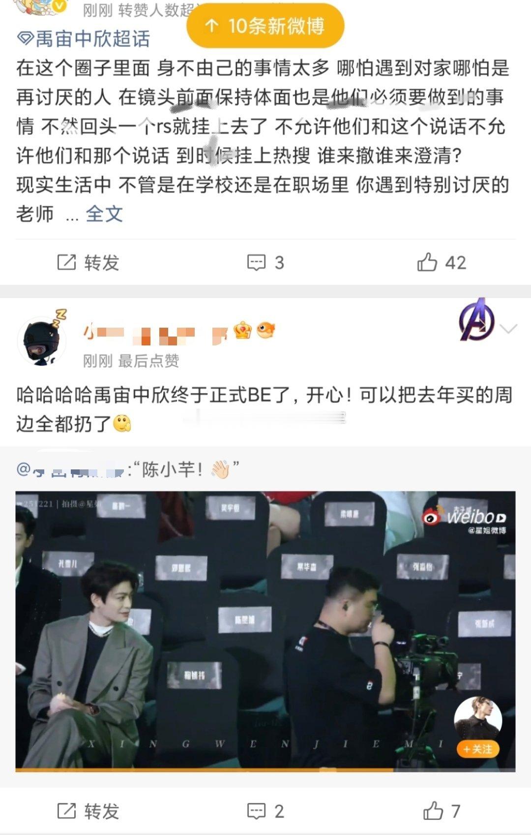 星光大赏内场,因为丁禹兮主动跟赵露思说话,还喊了“陈小芊”,禹宙中欣cpf破 防了。。。丁禹兮内场禹宙中欣