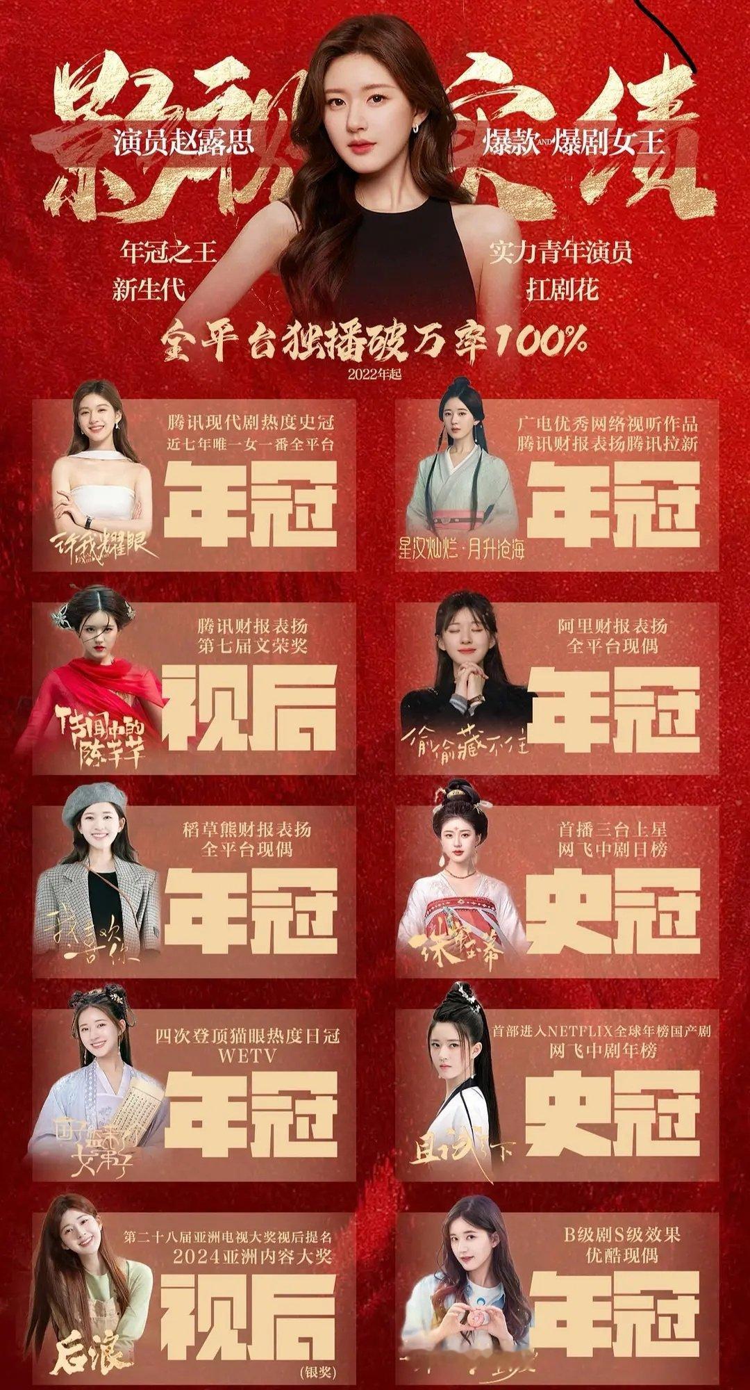 星光大赏内场星光大赏 赵露思荣获🐧年度影响力艺人,客观来讲我觉得算实至名归,毕竟空降许我荣耀,最后成为今年剧王,云合也是第一。影视寒冬,挺不容易的。