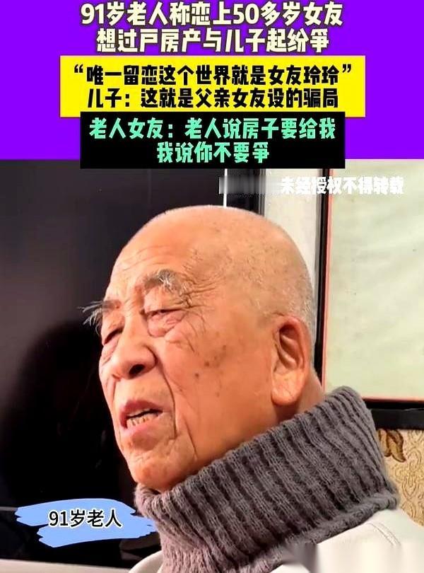 91岁,要把亡妻留下的房子,送给50岁的女朋友。 就这一句话,直接把家里炸了。 儿子快急疯了,拦着喊:“爹!你被骗了!她是房产中介给你介绍的,图的就是咱家钱和房子!你那6万块钱的‘投资’,怎么忘的!” 老爷子也很刚,梗着脖子:“我照顾你妈8年,她走了5年,我一个人。我现在就想找个伴儿,这房子我想给谁就给谁,你们凭什么管我?” 听着都挺有理,对吧? 可这事儿,最让人心里发毛的,是那个50岁的女友说的话。 她说:“年龄不是问题,领不领证我都愿意陪着他。” 你品,你细品。这话术,是不是有点过于标准了?滴水不漏,情深义重。 说白了,这根本不是什么黄昏恋大战不孝子。 这是一个孤独到极致的老人,在拿自己最后、最值钱的东西,去赌一份陪伴。 他可能不知道是骗局吗?照顾了病人8年的人,能有多傻? 他就是太寂寞了。 寂寞到,明知道眼前是火,也想扑上去,借点光,暖和一下。 孩子们怕的是人财两空,失去的是一套房子。 可老爷子怕的是,在这个房子里,一个人,悄无声息地走到头。 这才是最扎心的。 法律能分清房产,但谁能填满人心的那个窟窿呢?