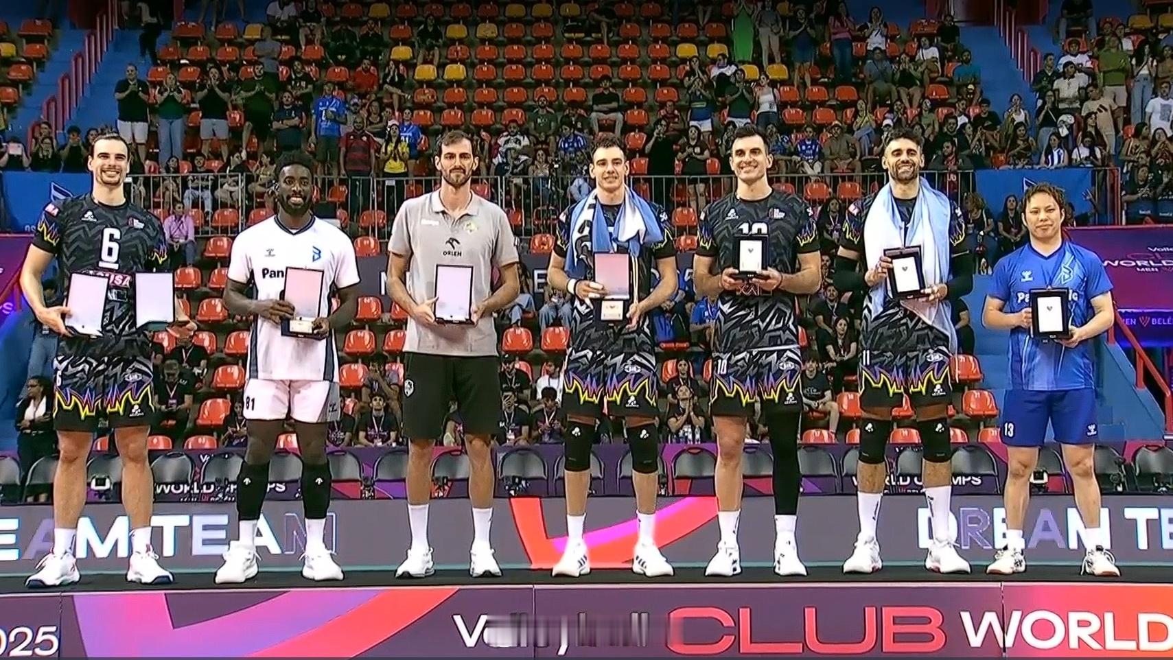 【2025男排世俱赛 最有价值球员和最佳阵容】最有价值球员(MVP):詹内利(佩鲁贾)。最佳主攻:洛佩斯(大阪布鲁特恩)、拉塞尔(扎维尔切);最佳副攻:洛瑟(佩鲁贾)、索莱(佩鲁贾);最佳接应:本塔拉(佩鲁贾);最佳二传:詹内利(佩鲁贾);最佳自由人:山本智大(大阪布鲁特恩)。