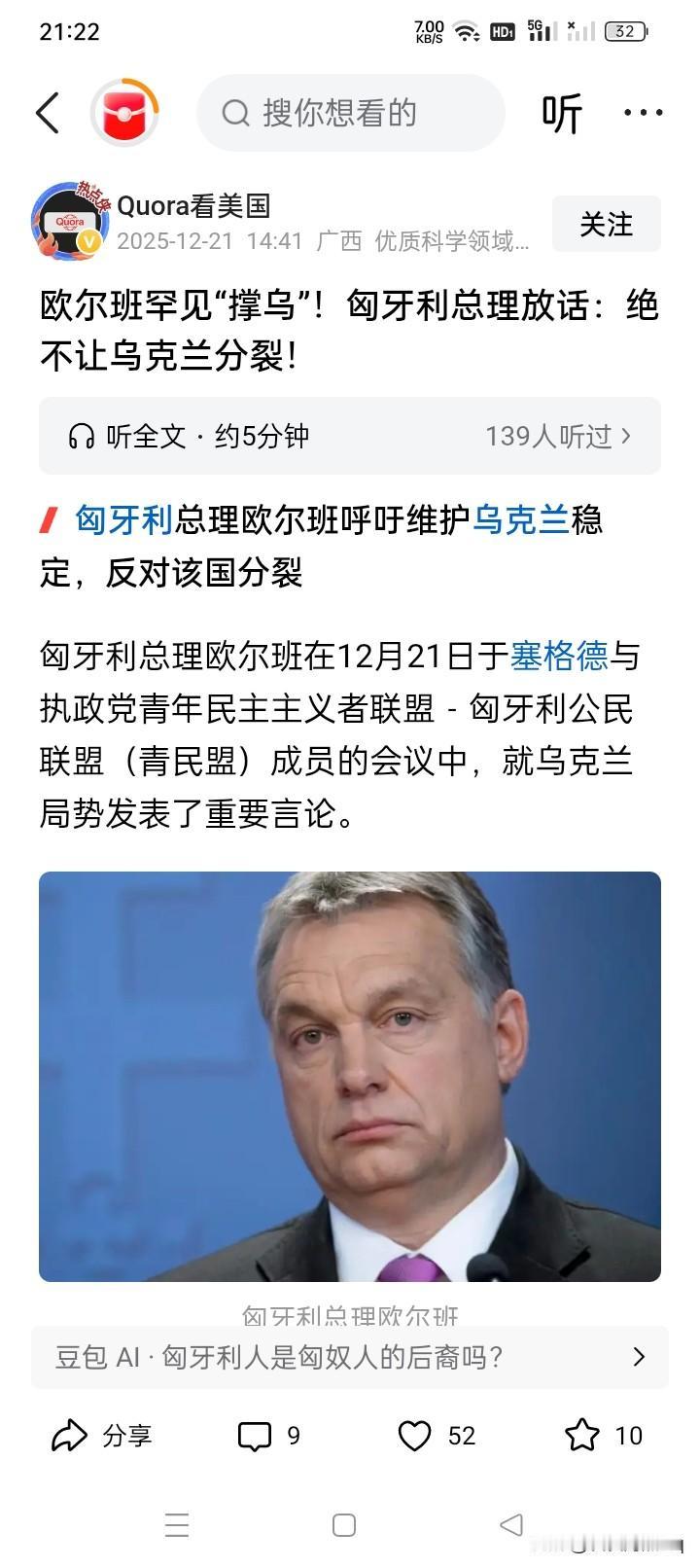 吓了一跳! 一看到网络上匈牙利总理欧尔班表示,“绝不让乌克兰分裂”的消息,确实让