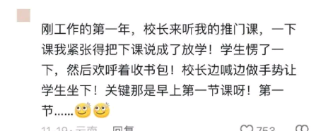 刚工作的第一年,校长来听我的推门课,一下课我紧张得把下课说成了放学,学生愣了一下,然后欢呼着收书包,校长边喊边做手势让学生坐下,关键那是早上第一节课呀