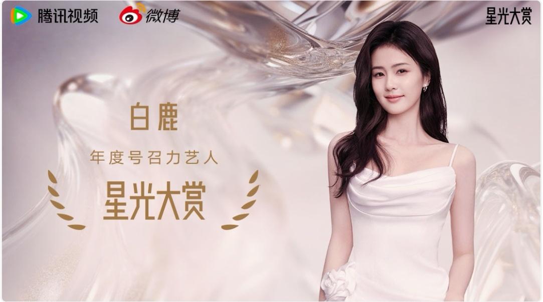 白鹿的名字,是号召力的具象化符号。在星光大赏的舞台上,她一袭礼裙,捧起“年度号召