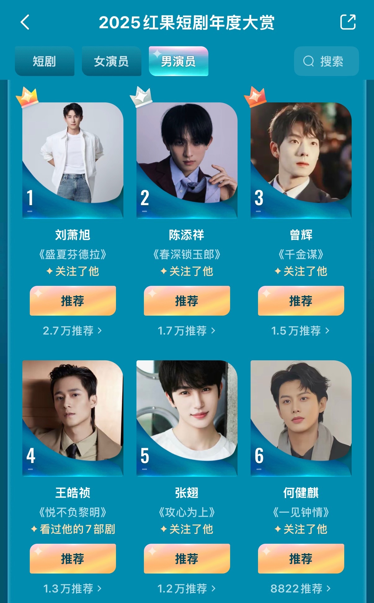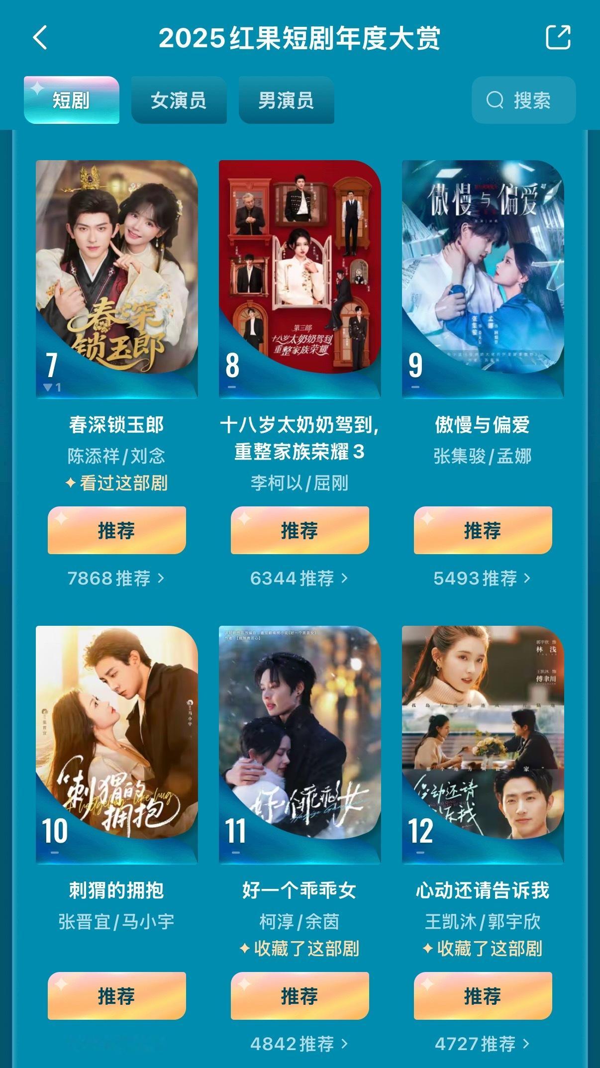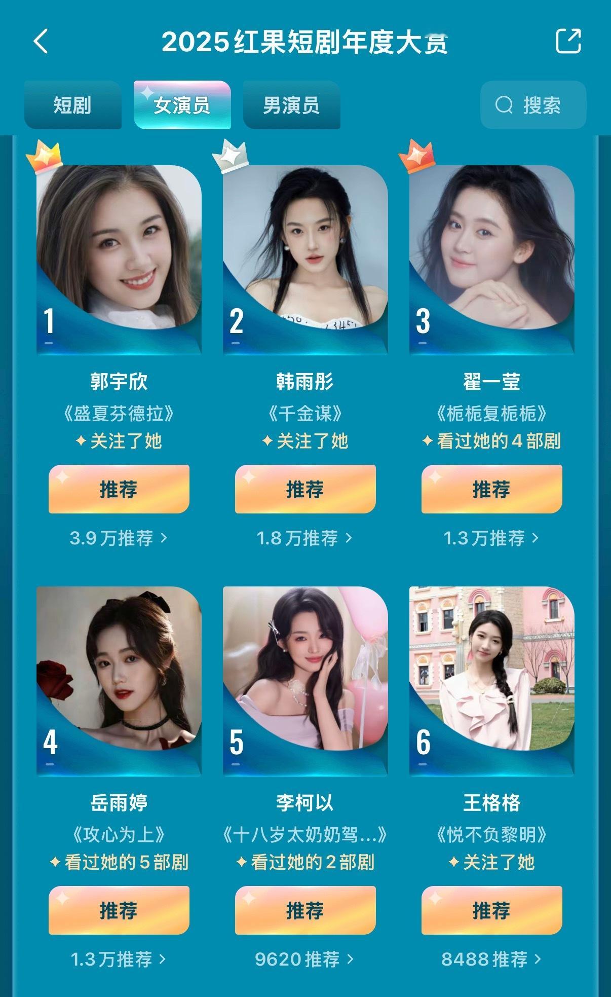 红果年度大赏开始了! 目前剧第一 盛夏芬德拉女演员第一 郭宇欣男演员第一 刘萧旭盛夏芬德拉两口子包了!