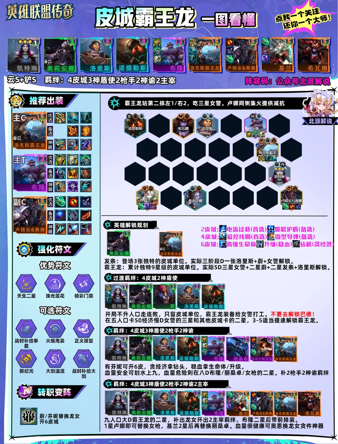 阵容构筑:女警、发条、洛里斯、泰坦、布隆、基兰、卢娜、霸王龙、龙女