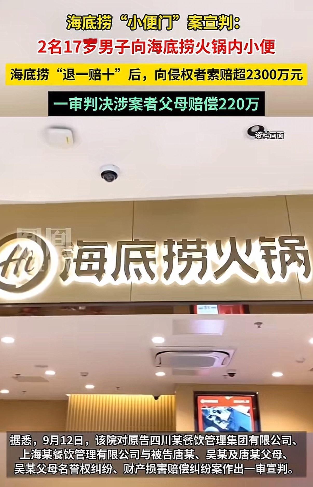 海底捞小便事件家长赔偿220万元的新闻一出,网友们瞬间炸锅,有人调侃“史上最贵的一泡尿”,也有人拍手称快“熊孩子家长终于为自己的失职买单了”。事情的起因其实很简单,就是一位家长带着孩子在海底捞吃火锅,结果孩子调皮,在包间的备料桶里撒了一泡尿,导致门店损失惨重,最终家长被判赔偿220万元。听起来是不是有点夸张?但当你了解了整个事情的经过和背后的逻辑,就会发现,这220万元赔得并不冤。 事情发生在一家海底捞门店,当时一位家长带着孩子在包间用餐,孩子突然内急,家长没有及时带孩子去洗手间,结果孩子竟然在包间的备料桶里小便。这个备料桶可不是普通的垃圾桶,而是用来盛放火锅底料和食材的专用容器,里面装着大量的鲜毛肚、黄喉、牛肉粒等食材,价值不菲。孩子这一泡尿下去,这些食材全部报废,门店不得不将整桶食材以及包间内的所有调料和饮料全部销毁,损失巨大。 更让人无语的是,事情发生后,家长的第一反应并不是道歉和赔偿,而是试图推卸责任。他们先是表示孩子只有五岁,还小,憋不住是正常的,又说门店没有在包间内明确标识备料桶的用途,认为门店也有责任,应该双方各承担一半损失。然而,监控录像显示,孩子小便时,家长就在旁边玩手机,根本没有注意到孩子的行为,显然存在监管失职。最终,法院判定家长全责,需赔偿门店220万元。 这220万元的赔偿金额是怎么算出来的呢?据门店方面介绍,主要包括以下几个方面:首先是食材损失,备料桶里的食材价值数万元;其次是门店停业损失,为了彻底消毒和清洁,门店不得不停业一天,租金、员工工资、客流流失等加起来就是几十万;还有品牌公关费用,为了消除负面影响,门店投入了大量的宣传费用;此外,还有消毒清洁费用、检测费用等。所有费用加起来,220万元并不算漫天要价。 有人表示,这220万元赔得好,给所有“熊孩子家长”敲响了警钟,子不教父之过,孩子犯错,家长就要承担责任,不能一句“孩子还小”就推卸责任。也有人认为,220万元的赔偿金额确实有些高,但当你了解了整个事情的经过和背后的逻辑,就会发现,这220万元赔得并不冤。毕竟,门店的损失是实实在在的,而且家长确实存在监管失职。 这件事情也引发了人们对于“熊孩子”现象的思考。在现实生活中,我们经常会遇到一些“熊孩子”,他们在公共场合大吵大闹、随意破坏公物、影响他人,而他们的家长往往以“孩子还小”为借口,不予制止和管教。这种行为不仅会影响他人的正常生活,也会对孩子的成长产生负面影响。孩子是家长的一面镜子,他们的行为往往反映了家长的教育方式和素质。如果家长不能正确引导孩子,让孩子明白什么是对什么是错,那么孩子将来可能会犯更大的错误。 这件事情也提醒了广大的家长,带孩子外出时,一定要看好自己的孩子,及时满足孩子的合理需求,比如上厕所、喝水等,避免孩子因为憋不住而做出不当行为。同时,也要教育孩子尊重他人、遵守公共秩序,不要随意破坏公物和他人财物。如果孩子犯了错误,家长要勇于承担责任,积极道歉和赔偿,给孩子树立一个正确的榜样。 对于商家来说,这件事情也敲响了警钟。在经营过程中,一定要做好安全防范措施,比如在包间等私密空间安装监控设备,以便在发生意外时能够及时了解情况;同时,也要对员工进行培训,提高他们的应急处理能力,一旦发生类似事件,能够迅速有效地处理,减少损失。此外,商家还可以通过张贴温馨提示等方式,提醒顾客注意安全、文明用餐,避免类似事件的发生。 海底捞小便事件家长赔偿220万元,虽然听起来有些夸张,但当你了解了整个事情的经过和背后的逻辑,就会发现,这220万元赔得并不冤。这件事情也给所有的家长和商家敲响了警钟:家长要看好自己的孩子,教育孩子遵守公共秩序;商家要做好安全防范措施,提高应急处理能力。只有这样,我们才能共同营造一个文明、和谐的社会环境。海底捞潜规则 海底捞尿火锅 海底捞尿桌男 来源:封面新闻