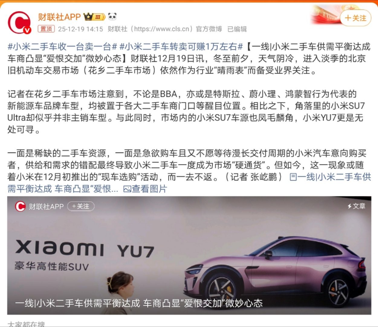 小米二手车收一台卖一台小米的保值率已经很算可以,一个成立两年的品牌,在市场上有时还能出现二手比原价贵的情况,还真不是什么厂商能做到的