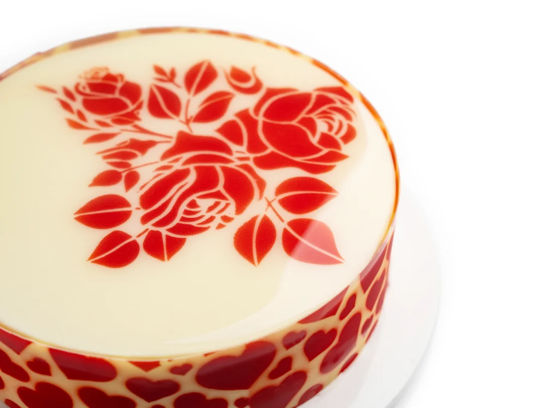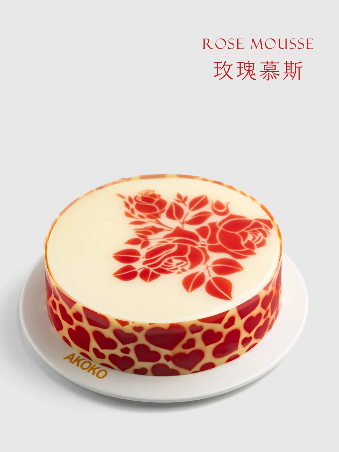 这款玫瑰慕斯结构层次分明,樱桃果酱酸甜可口,榛子蛋糕醇香绵软,酸奶芝士慕斯轻甜不腻,入口唇齿留香,正如爱情的甜蜜与悠长。