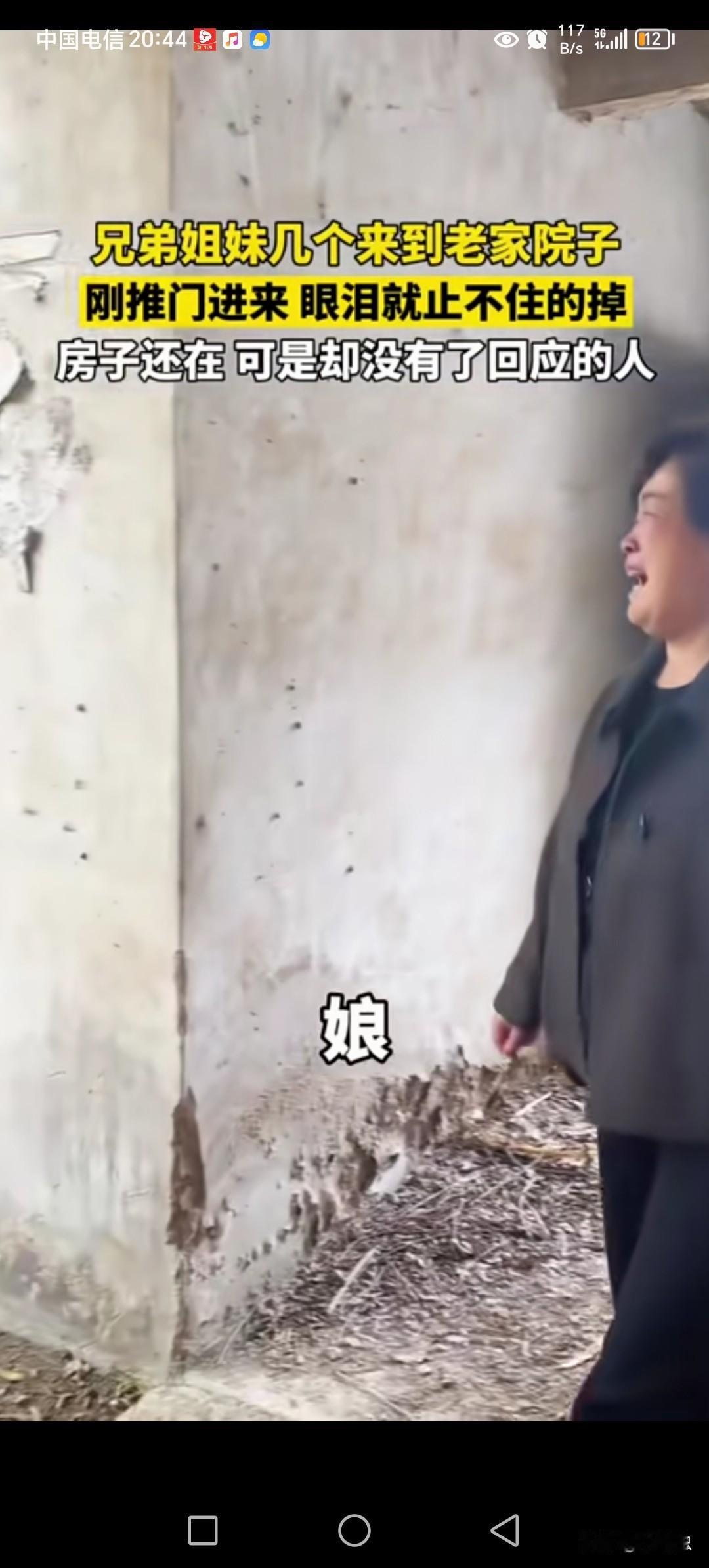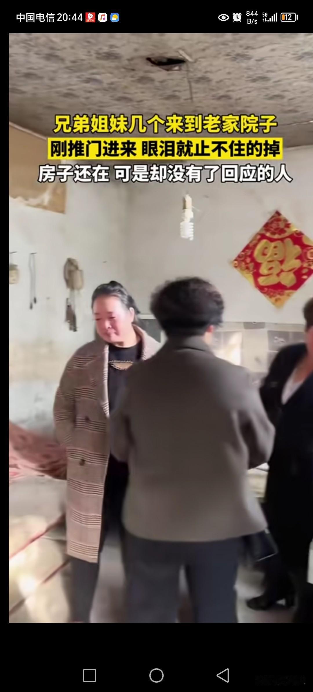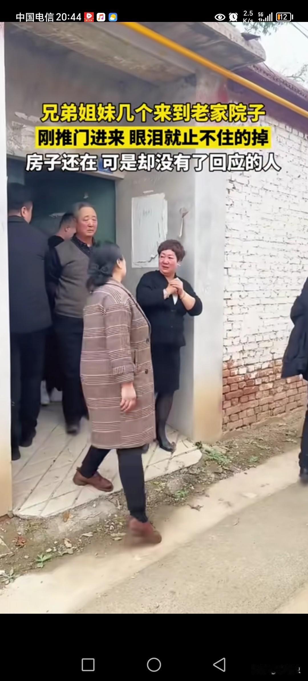 这是我这今天刷到最落泪视频。 兄弟姐妹一起回老家,打开门那一瞬间防破了,家里没人气房子早就无生机勃勃。 父母离世,回来一句“娘”仿佛拉回曾经一家人和谐在这里居住过的场景历历在目。 房子还在,但思念的人已不在了。 思乡思物思父母,这应该是每必须面对人生最大一坎之一“离别”。 世上没有房子能养人气,而是人气养房子。 只要有人居住的房子,都会越住越有生机勃勃,兄弟姐妹众多不应该没人去打理房子,就算父母没在了,房子收拾一下。 进去坐一会儿,泡一下茶,抽根烟。 那都是心灵安慰,最好放松。 老家有房子一定要多打理,避免塌了。 当你有一天累,心烦了,无地方可以倾诉,在老房子坐上几个小时,那也是最好的心灵释放。 这种释放出来压力,任何地方都比不上。