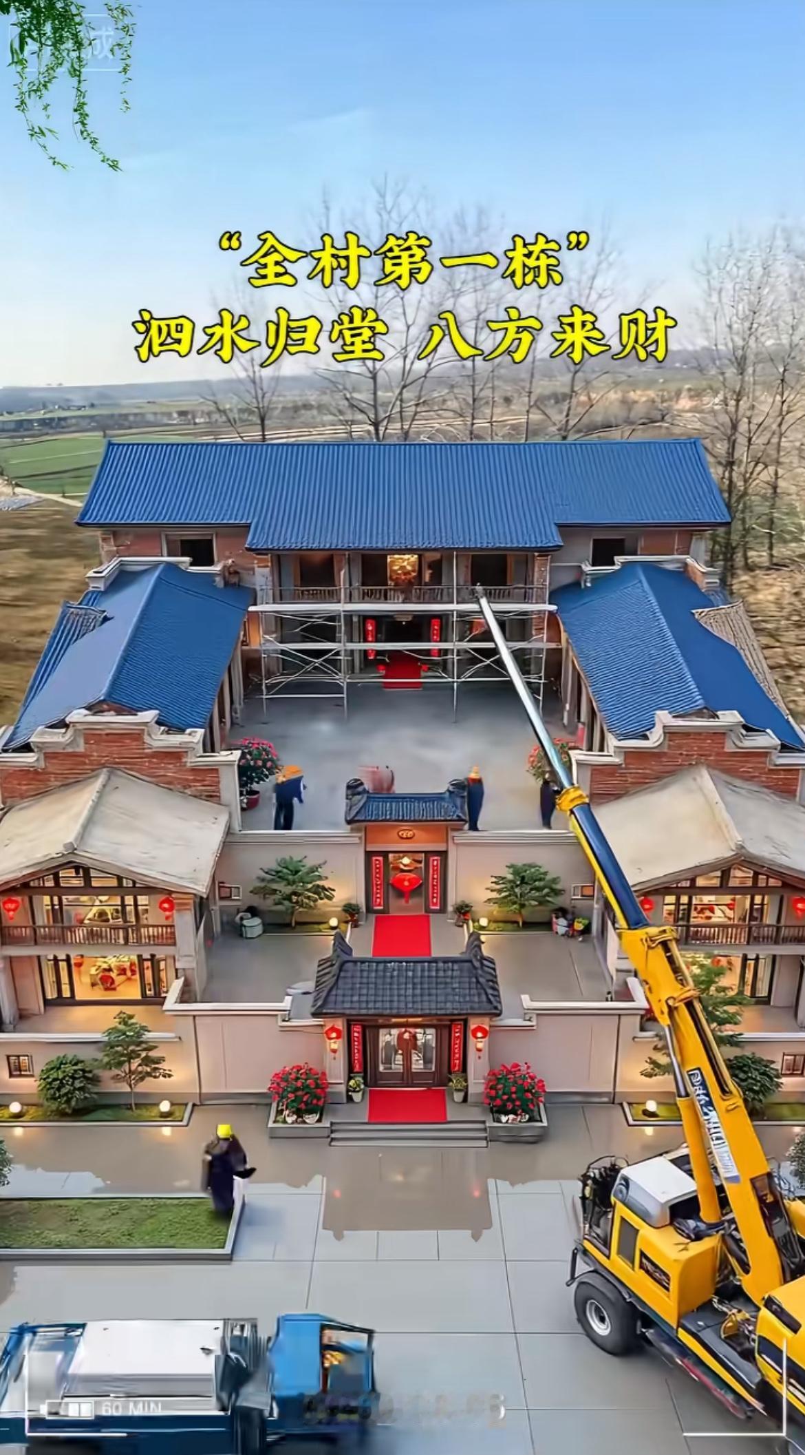 参加了一场超有排面的新中式别墅揭幕仪式,门口横幅写着“全村第一栋,八方来财”,太霸气了。 这别墅融合了传统中式元素与现代设计,青瓦白墙,飞檐斗拱,韵味十足。揭幕时,礼炮齐鸣,现场热闹非凡。大家纷纷围过来参观,都对这栋别墅赞不绝口。据说主人为了建这别墅,花了不少心思,从设计到选材都亲力亲为。这不仅是一栋房子,更是主人实力的象征。相信住在这里,真能如横幅所说,八方来财,日子越过越红火!