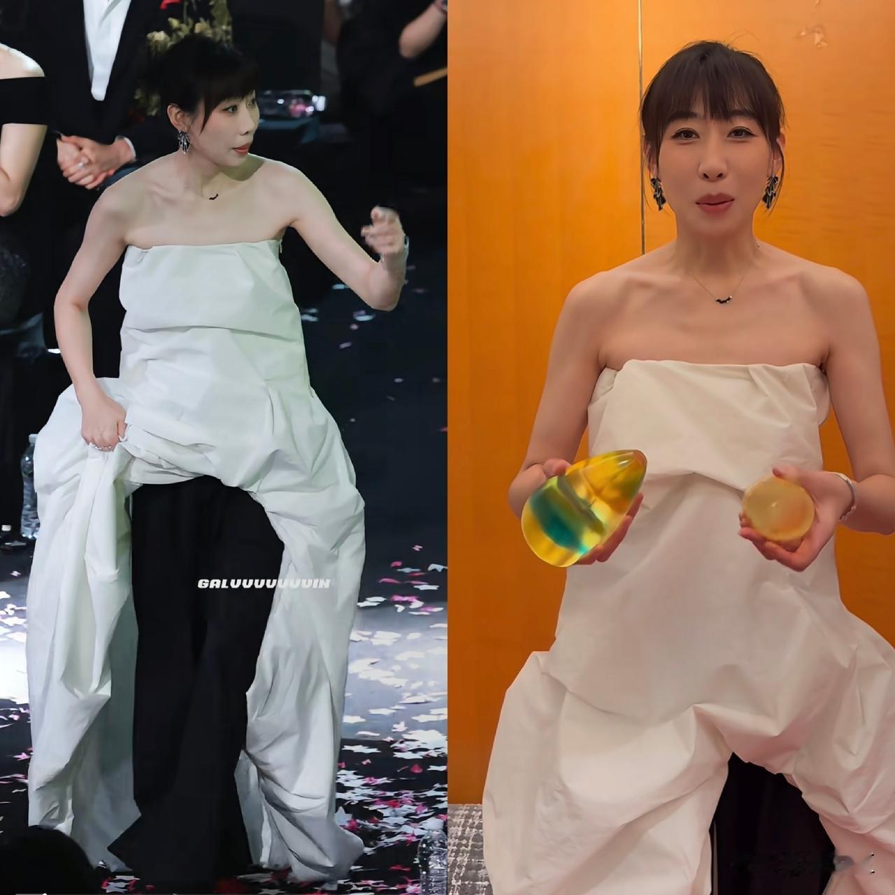 笑不活了,任素汐也太可爱了吧! 先是红毯上那身衣服,让全网替她着急:裙子是不是