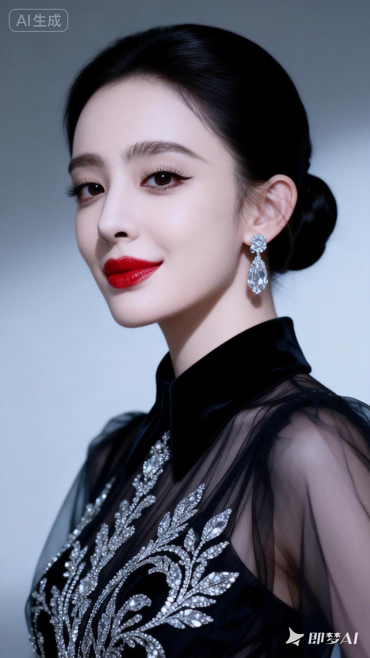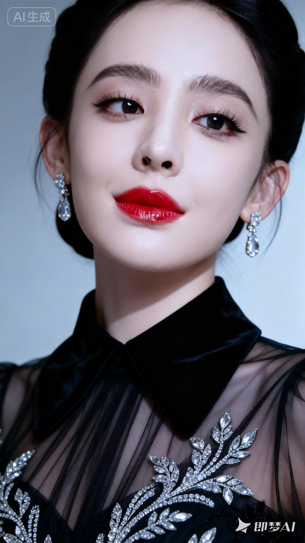 优雅黑裙,闪耀耳环,红唇诱惑,尽显魅力!