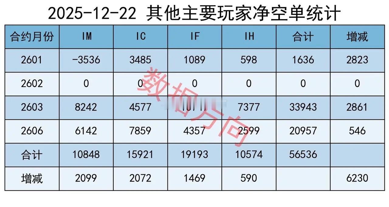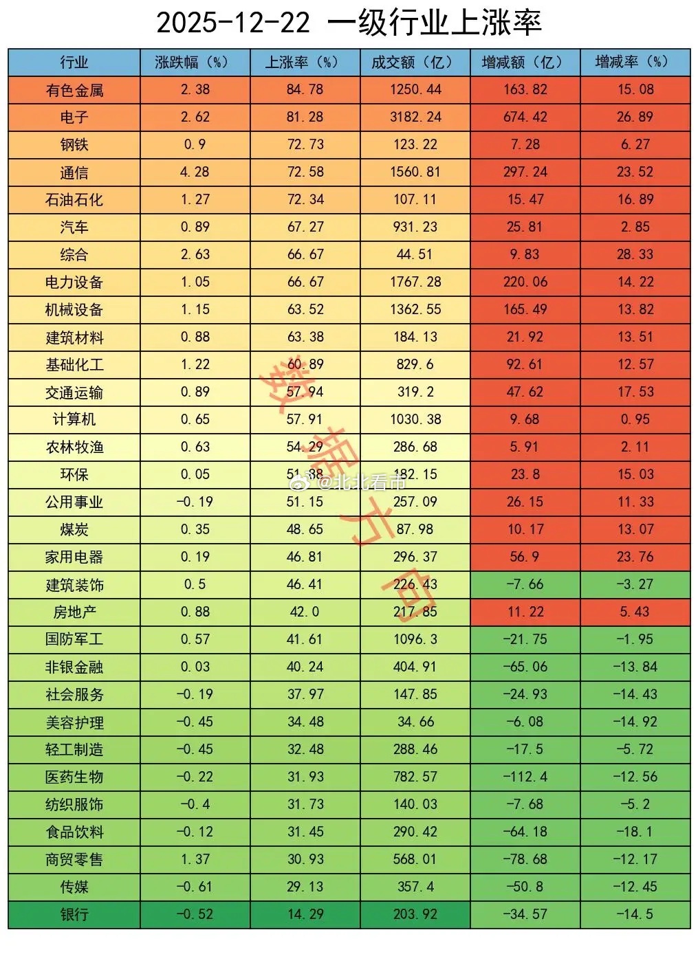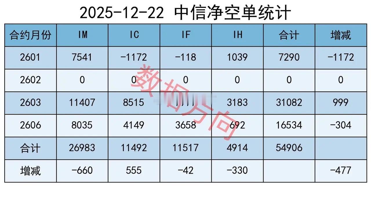 A股放量上涨,机构大幅加空大盘全天单边上行,全A指数涨幅1%,算力硬件、有色金属、海南自贸等强势领涨,银行、传媒等跌幅居前,个股上涨率54%,成交额较上周五增加8%。所有宽指都放量上涨。创业板指、科创50指数,涨幅分别为2.23%、2.04%,领涨两市。上证50、中字头,涨幅分别为0.53%、0.46%,涨幅相对较小。其他宽指的涨幅都在1%附近及以上。从复盘数据来看,机构们加空力度不小。行业有色金属、钢铁、石油石化,一起进入榜单前五名,大宗商品方向继续保持强势美联储年内累计降息75个基点并重启扩表,市场对2026年进一步降息的预期持续升温,推动实际利率下行,显著提升无息贵金属的吸引力。东大已经连续13个月增持黄金,2025 年前三季度全球央行净购金量达 634 吨,为金价提供坚实底部支撑。白银工业需求因光伏、新能源车、AI 基础设施扩张爆发,2025 年全球白银市场预计有 9500 万盎司供应缺口;铂金受工业需求爆发预期、供需缺口与金融属性助推,价格创 2008 年以来新高。铜、镍等一边受新能源转型需求拉动,一边供给端受矿产开发周期、地缘约束影响,区域性缺口显现,推动价格走强。再加上地缘局势升温,进一步引发了能源与大宗商品供应链担忧,从而推动价格大幅上涨。电子、通信,分列榜单第2、4名,涨幅分别为2.62%、4.28%算力硬件、半导体设备反复活跃。上周一度有所调整,今天再度走强。中国科技股处于行业高景气、高成长期的过程中,能够催生更多资本投入,推动行业快速发展和应用推广。汽车、电力设备、机械设备,一起进入榜单前十名高端制造,仍然保持着应有的强度。热力图本图用于观察市场整体强度结构。有色金属(97)、通信(96),是唯二强度大于90的行业。有色金属(97)、基础化工(77)、石油石化(72)、钢铁(68)、公用事业(42)、煤炭(32),大宗商品方向的平均强度为65。高端制造方向的平均强度为58。科技方向,除了通信较强,其他几个都较弱,平均强度44。消费方向的平均强度回落到42。期指持仓某信,减空477手;对IC加空555手,分别对IH、IF、IM减空330手、42手、660手;平仓买单2877手,平仓卖单3354手。其他主要玩家,加空6230手;四大品种全部加空,分别对IH、IF加空590手、1469手,分别对IC、IM加空2072手、2099手;平仓买单16094手,平仓卖单9864手。大盘单边上行,所有指数都放量上涨,沪指收复3900点关口,红票超过五成,两者合计加空5753手。以平仓买单为主,不似对冲,更像是部分多头在撤退。合计对IH、IF加空1687手,合计对 IC、IM加空4066手。两者因为昨天持有的105689手净空单,会在今天的行情中亏损15亿。操作完成后,共持有净空单111442手。时隔近四个月,净空单再次突破11万手。