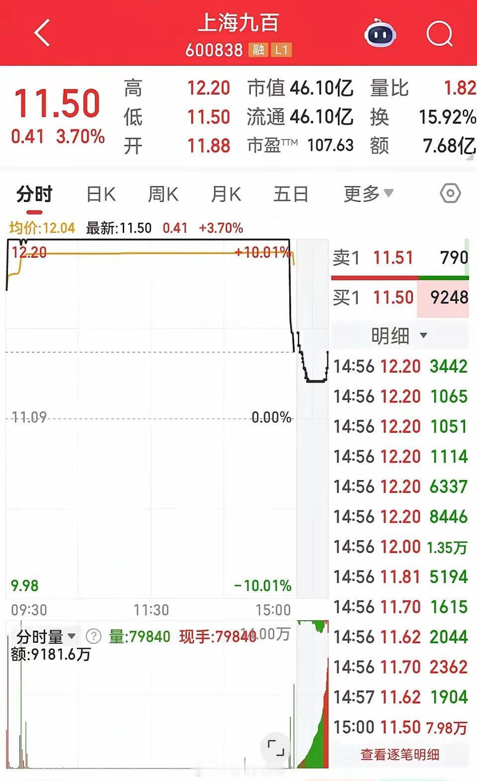 悲剧!尾盘炸板的悲剧!当尾盘炸板成为一种潮流的时候,打板人的噩梦开始了上海九百,早上秒板,下午2:55还在板上,2:56炸板,收盘只涨三个多点打板该股的小伙伴们,今天又是欲哭无泪,非常悲催的一天。上周五,一个高标的商超股炸板,今天又一个三板的商超股炸板了。新零售,今天总体上还是非常强势的,涨停数有14个该股今天成交量7.68亿,创出近期的天量,结合尾盘炸板,顶部特征非常明显。散户们,对于这种顶部特征非常明显的股票,一定要远离。