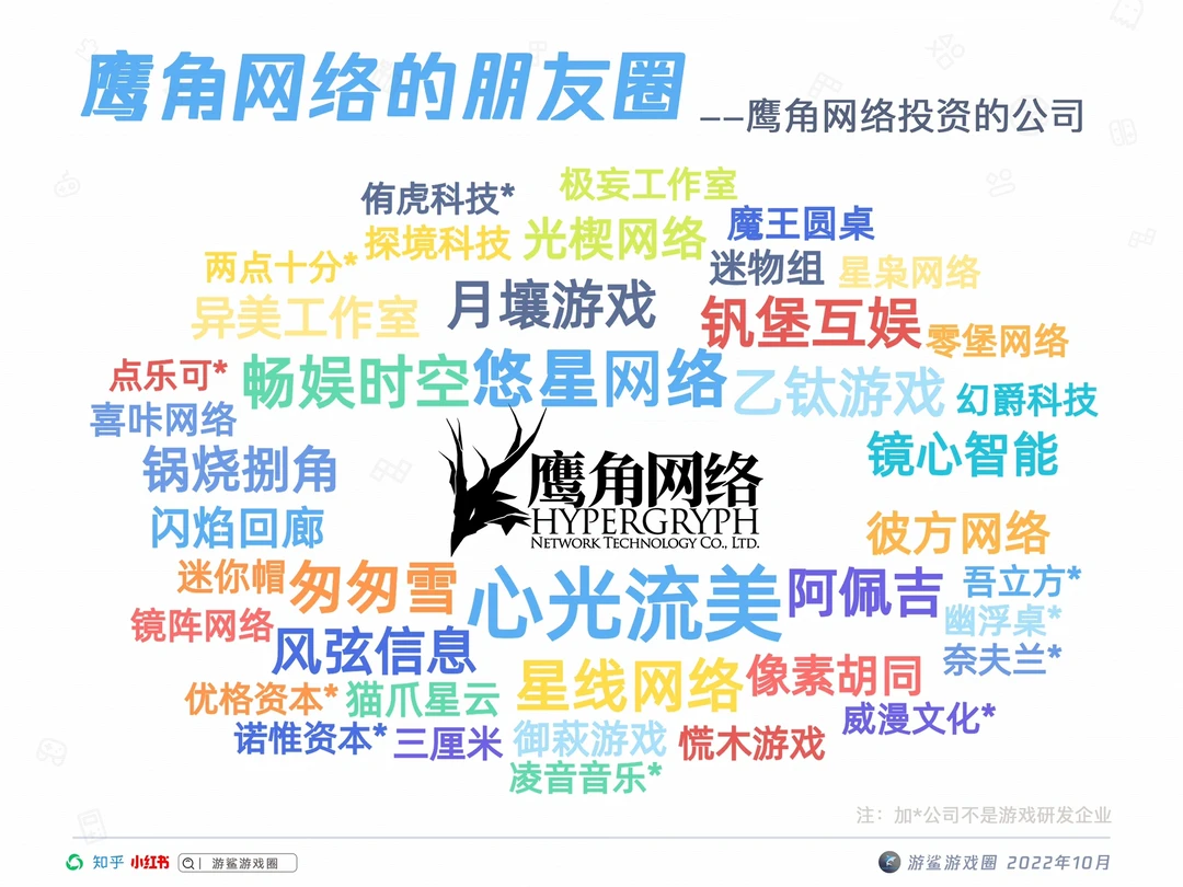 鹰角网络虽然不是大厂,但投资十分活跃,近两年来投资了三十几家游戏公司,以及十几家文娱公司(游戏动画、配乐外包,动漫制作等)。