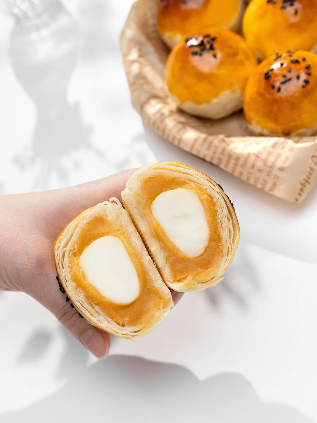 🧀今天复刻一下鲍师傅同款芝士蛋黄酥,这个是超大版,一个110克左右!
