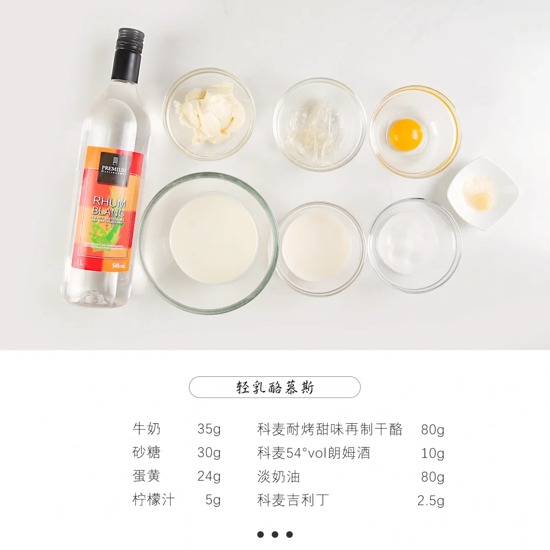 2、依次加入泡好的吉利丁片、柠檬汁、干酪酱和朗姆酒搅拌均匀。