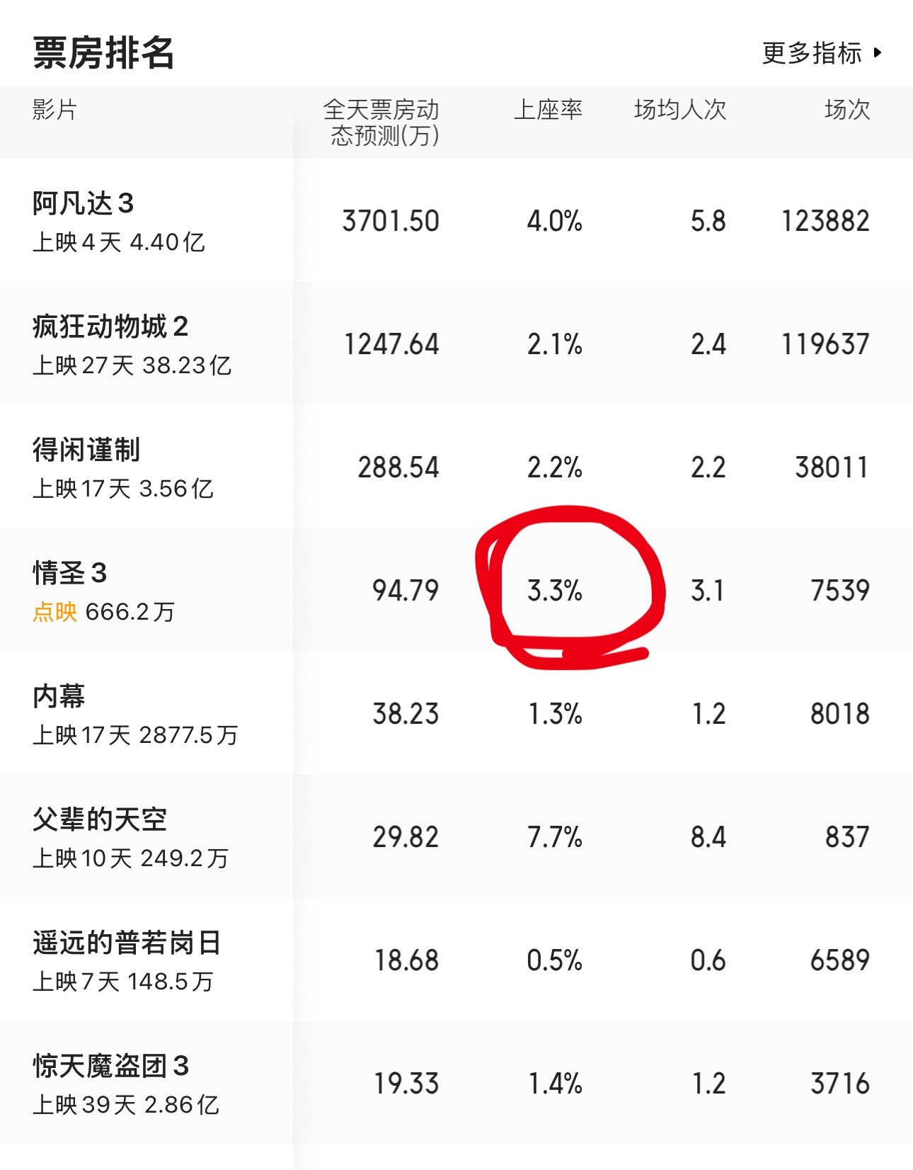 情圣3点映只有这个上座率(大部分都是黄金场),感觉真把自己点🈚️了。