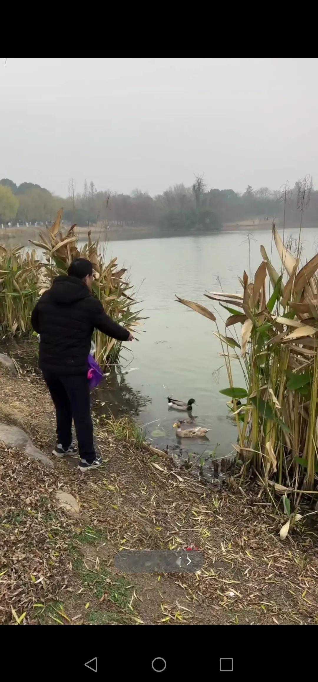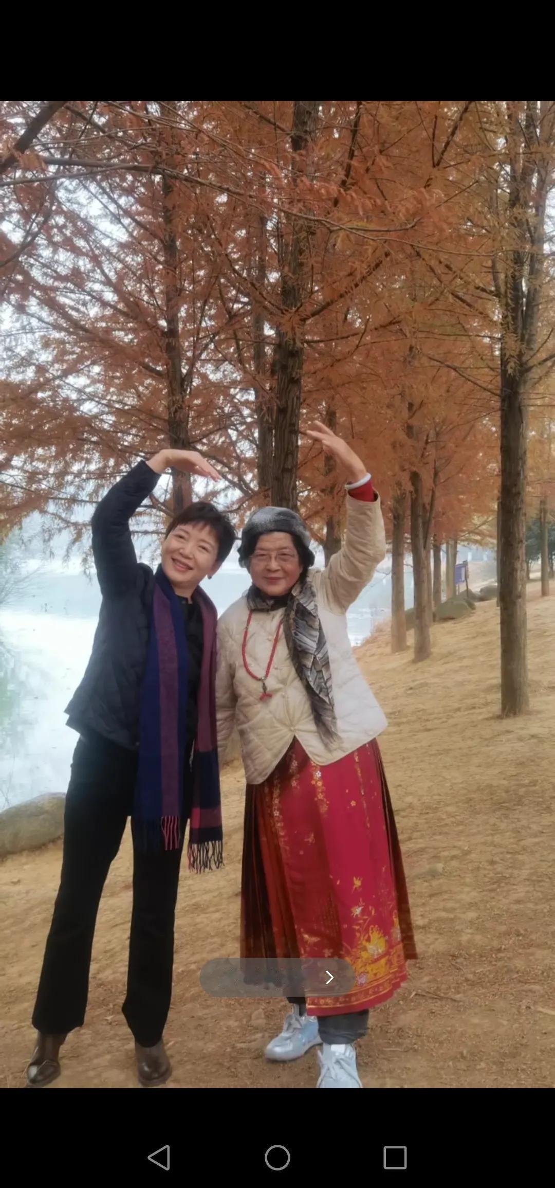 燕雀湖水泛绿波, 杉叶红色暖初冬: 湖畔歌声唱不停, 全家忘怀欢乐中。 (南京农业大学张文卉老师)