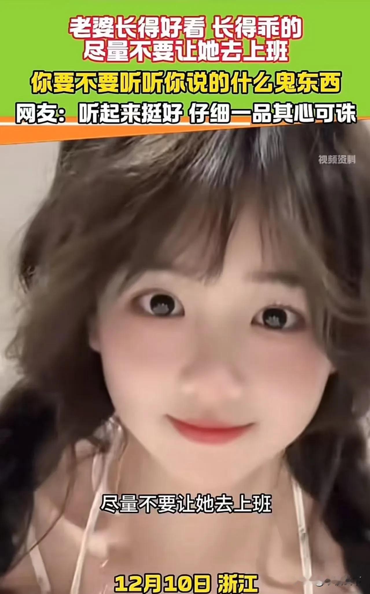 “老婆长得好看,长得乖的,尽量不要让她去上班,否则容易……”男子在社交平台抛出的这句话,瞬间点燃评论区,短短几小时就冲上热搜。 有人怒斥这是赤裸裸的控制欲:“都什么年代了,还想把女人圈在家里当附属品?她有自己的事业和人生,凭什么要被你‘保护’?” 也有人拍手叫好:“话糙理不糙!现在职场多少烂桃花,多少男人盯着漂亮姑娘献殷勤,防患于未然有错吗?” 而说出这句话的男子,背后藏着一个让无数人沉默的故事。 他的妻子曾是公司里的“一枝花”,性格温柔,待人真诚。可自从入职后,办公室的流言蜚语就没断过。男同事的刻意搭讪、领导的“特殊关照”、女同事的嫉妒排挤,压得妻子喘不过气。 更让他揪心的是,有次妻子加班晚归,满身酒气,哭着说客户非要拉着喝酒,推都推不掉。那一刻,他看着妻子泛红的眼眶,心疼得直发抖。 他不是不让妻子独立,而是见过太多漂亮女孩在职场遭遇的隐性骚扰和不公;他不是想控制,而是想为妻子挡住那些没必要的风雨。 这话听着刺耳,却戳中了现实的痛点:好看从来不是原罪,但人性的贪婪和恶意,却总在盯着这份美好。 当然,也有人反驳:难道因为有风险,就要放弃自我成长?难道漂亮女孩就该躲在温室里? 这场争论的背后,哪里是“好看该不该上班”,分明是现代人对安全感和自我价值的拉扯。 你支持男子的观点吗?评论区等你站队!