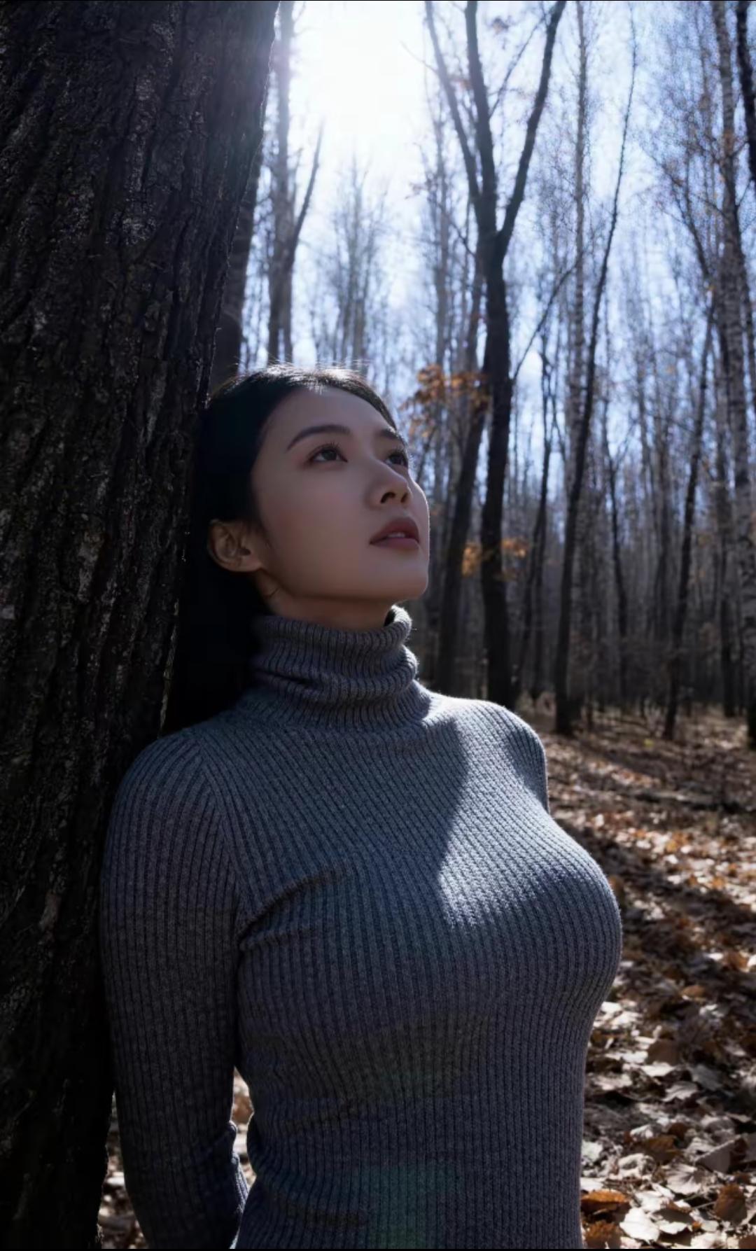 林间倚树思悠远,秋意入怀心自闲。
