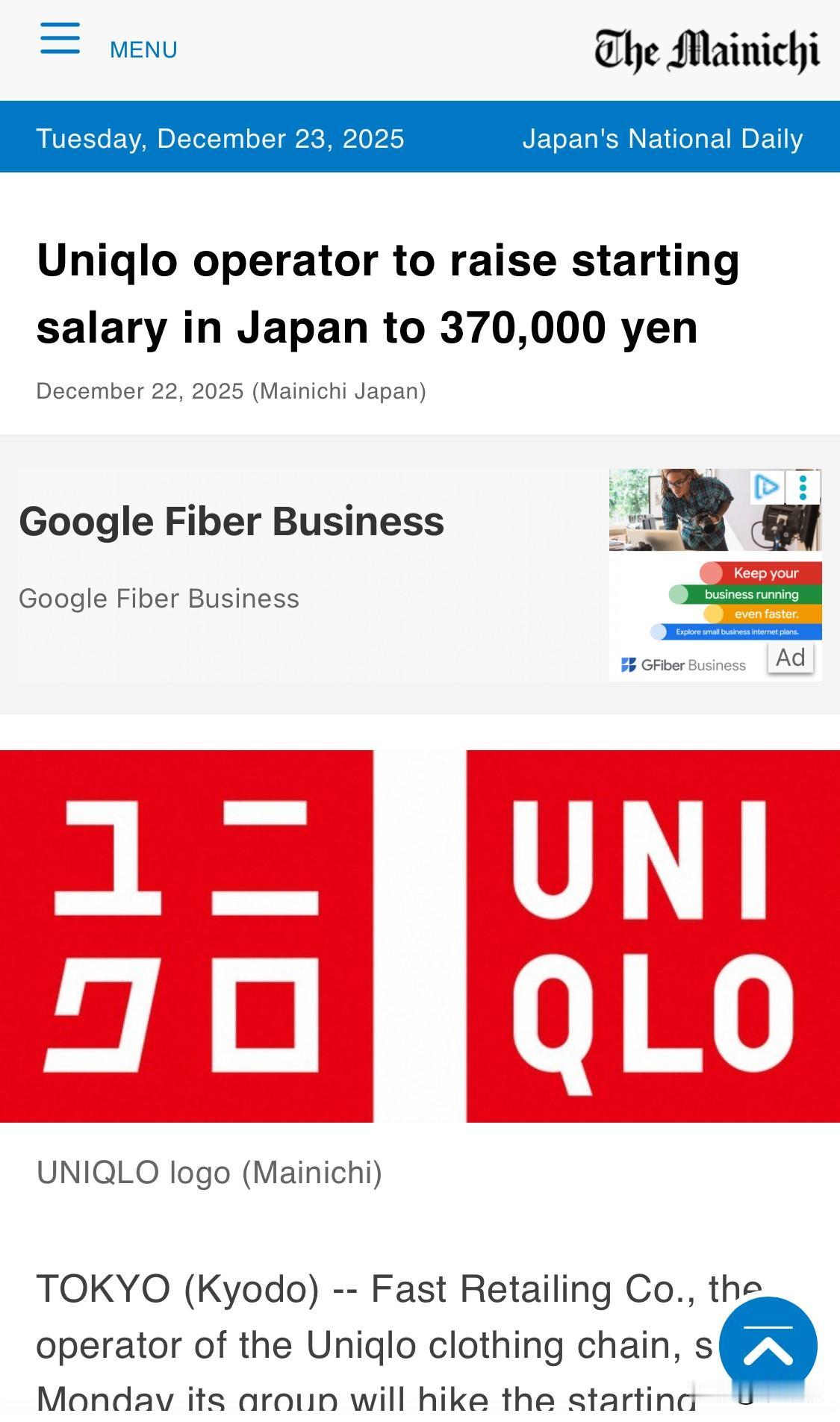 根据迅销集团(优衣库母公司)于 2025年12月22日 发布的最新公告,该公司将从2026年春季起再次上调日本国内应届毕业生的起薪: 月薪调整: 针对“管理候选人”职位(可能涉及海外调动),起薪将从现行的33万日元提高至 37万日元,涨幅约为12%。 对比2020年: 该职位的起薪在2020年时为21万日元。经过近年来的连续四次上调,六年内月薪累计增加了 16万日元。 年薪水平: 包含奖金在内,这批新入职员工的预估年薪将达到 590万日元(约合人民币27万元)。 调薪背景: 这是迅销集团连续第二年大幅提高毕业生起薪,旨在应对日本国内日益严重的劳动力短缺,并提高其在国际人才市场中的竞争力。 此外,对于不涉及异地调动的“地区限制型”正职员工,其起薪也将从25.5万日元上调至28万日元。
