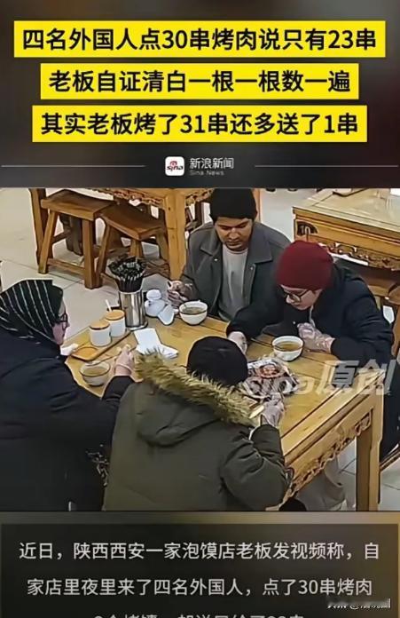 “滚回自己的国家!”近日,陕西西安,4名印度留学生去吃饭,当老板将烤肉端上桌时,他们称少了7串,老板让他们重新数,这才发现他们竟然是跳着数的,于是老板二话不说,直接将多送的那串拿走了,留下4人面面相觑。网友:活不起了! 事情发生在西安城南一条并不起眼的小巷里。夜幕降临,街边的烤肉摊烟火升腾,孜然和炭火混合的香味弥漫在空气中。 这家烤肉店开了多年,摊位不大,几张塑料桌椅,却因为分量实在、价格公道,在附近小有名气。 老板姓刘,四十多岁,说话直来直去,熟客都知道他“厚道”,只要生意不错,常常会多送一串烤肉,权当交朋友。 当天晚上,店里来了一桌特殊的客人——4名在西安求学的印度留学生。 几个人操着并不流利的中文,点单时反复确认价格,最终点了30串羊肉串、几份烤馕,还特意向服务员要了4碗免费的高汤。按照店里的规矩,高汤确实是免费提供的,老板也没多说什么。 烤肉很快上架,刘老板熟练地翻动铁签,油脂滴在炭火上“滋啦”作响。按照老习惯,他又顺手多烤了一串,打算一并端上去。很快,一大盘热气腾腾的烤肉被端到了桌上。 就在老板刚放下盘子准备转身时,其中一名编着小辫的留学生突然开口,用带着口音的中文说道: “老板,你这个不对,缺斤少两了。”这句话一出口,周围几桌客人都不由得抬头看了一眼。 老板愣了一下,随口问:“咋少了?” 对方语气笃定:“我们点了30串,现在不够。” 老板皱了皱眉,说:“不可能,我还多给了一串。” 几名留学生开始当着老板的面数串,可数的方式却让人有些看不懂——他们并不是一串一串顺着数,而是隔着数、跳着数,一边数一边低声交流。没一会儿,小辫小伙抬头说:“少了7串。”、 这下老板有点不高兴了。他把围裙一摘,直接走到桌前,把盘子往中间一推,说道:“来,你们别数了,我给你们数。” 在众目睽睽之下,刘老板拿起烤肉签,一串一串地往桌子上摆,嘴里清清楚楚地报数:“一、二、三……”数到三十的时候,他停了一下,又拿起最后一串:“三十一。” 老板抬起头,看着对方,语气平静却很硬:“你们只点了30串,现在是31串,这是我多送的。” 空气一下子安静了。几名留学生互相对视,脸上的表情明显有些尴尬。刚才还理直气壮的小辫小伙,此时低下头,没有再说话。 接下来的一幕,成了整段视频的“名场面”。刘老板二话不说,伸手把那多送的一串烤肉拿了回来,放回烤架旁,说了一句:“既然你们说少了,那这串就不送了。” 说完,他转身继续忙自己的生意,只留下那一桌人面面相觑。桌上的30串烤肉,依旧冒着热气,但气氛却变得格外微妙。 视频被旁边食客拍下并上传网络后,很快引发大量讨论。 网友们的评论几乎一边倒:“这下真是搬起石头砸自己的脚。”“本来白送一串,非要算计,结果一串都没占着便宜。”“老板干得漂亮,做生意可以厚道,但不能被当傻子。” 也有网友感慨:“活不起了吗?为了一串烤肉搞成这样。”更多人则为老板点赞,认为这种处理方式既不吵不闹,又守住了原则。 事后,有附近商户透露,刘老板并非第一次遇到类似情况,“他这个人其实挺好说话的,只要不耍心眼,能送就送。但你要是当面说他少给、坑人,他肯定不惯着。”